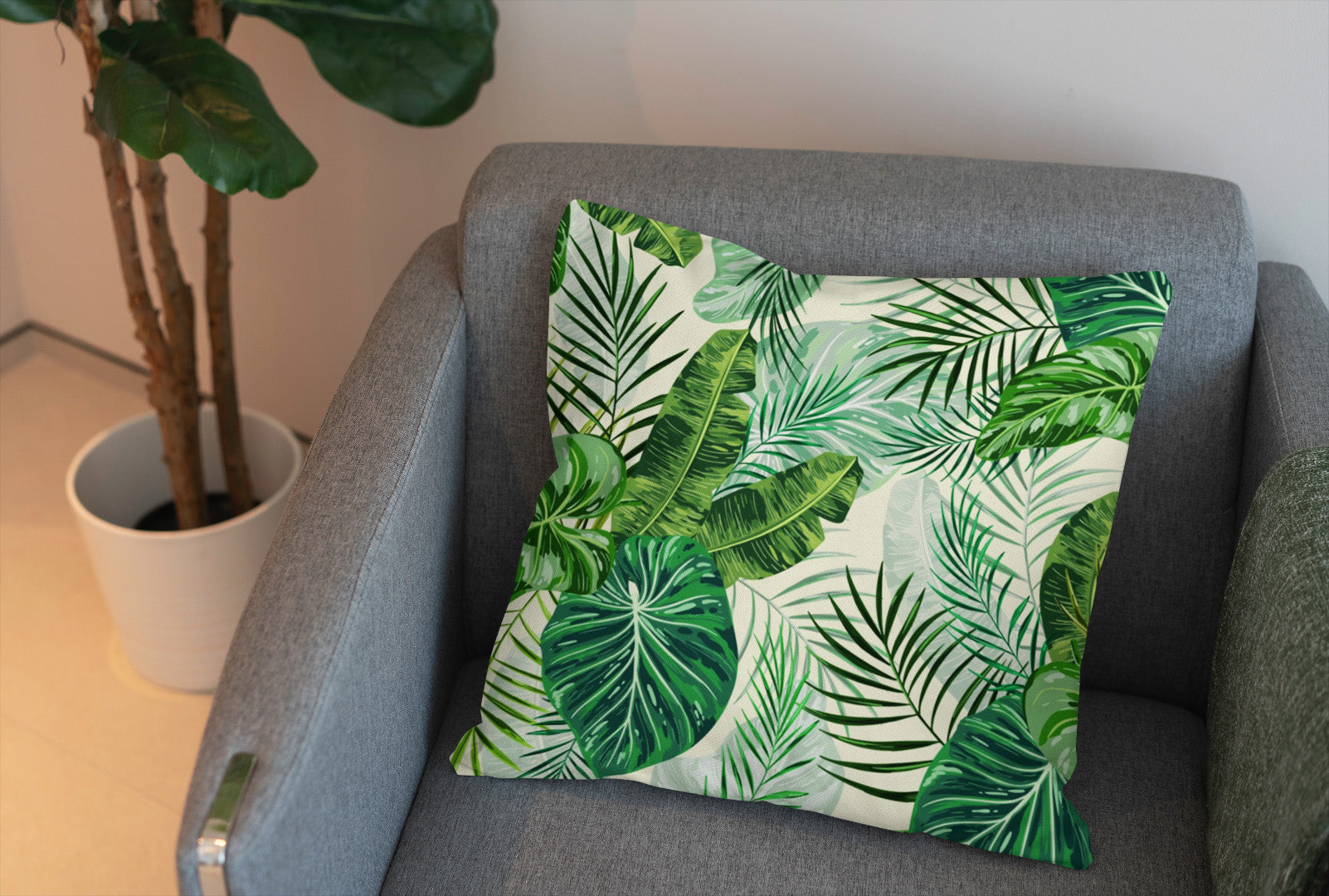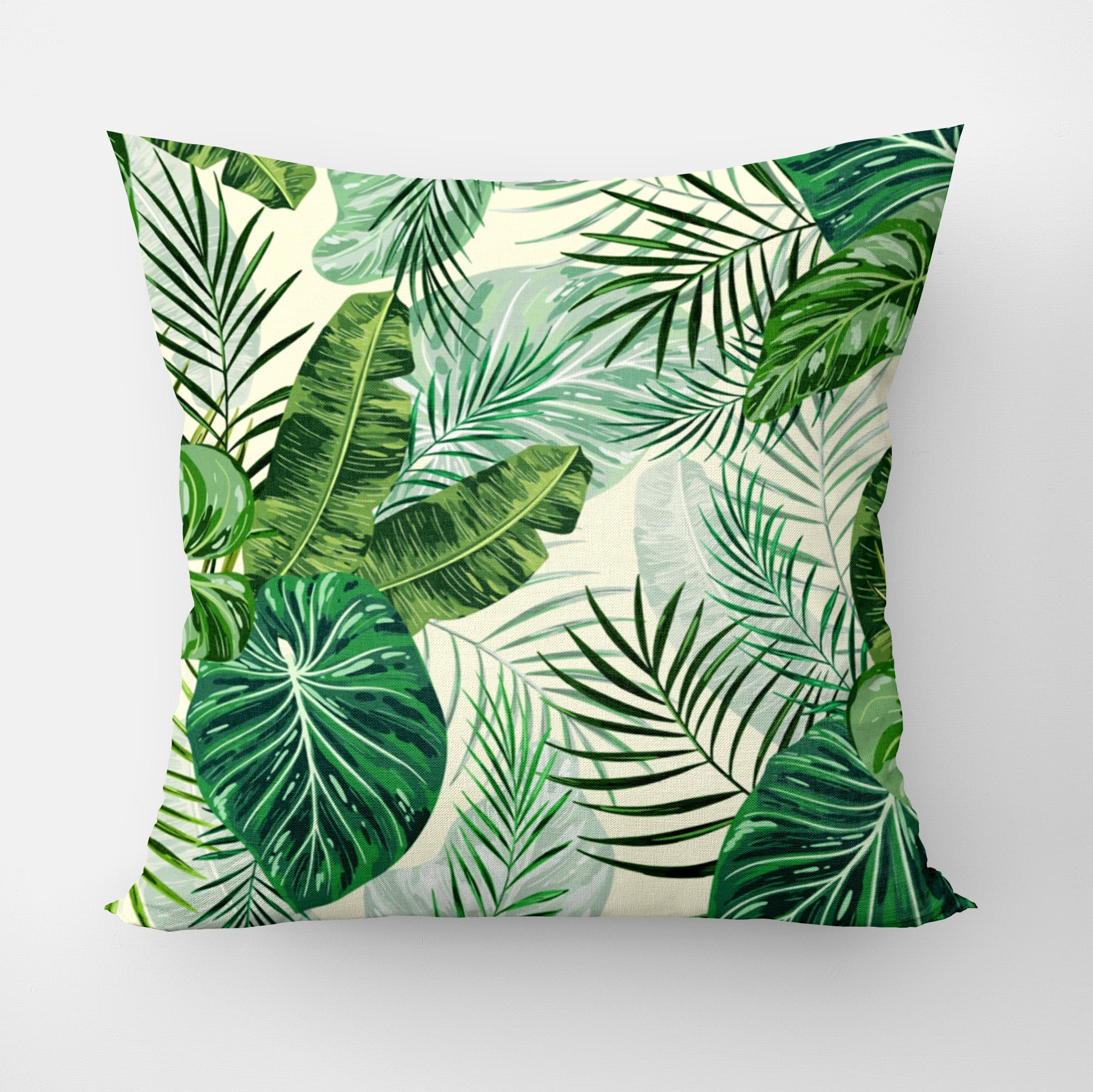 Green Plants Leaves Tropical Throw Pillow Cover DOMINICA