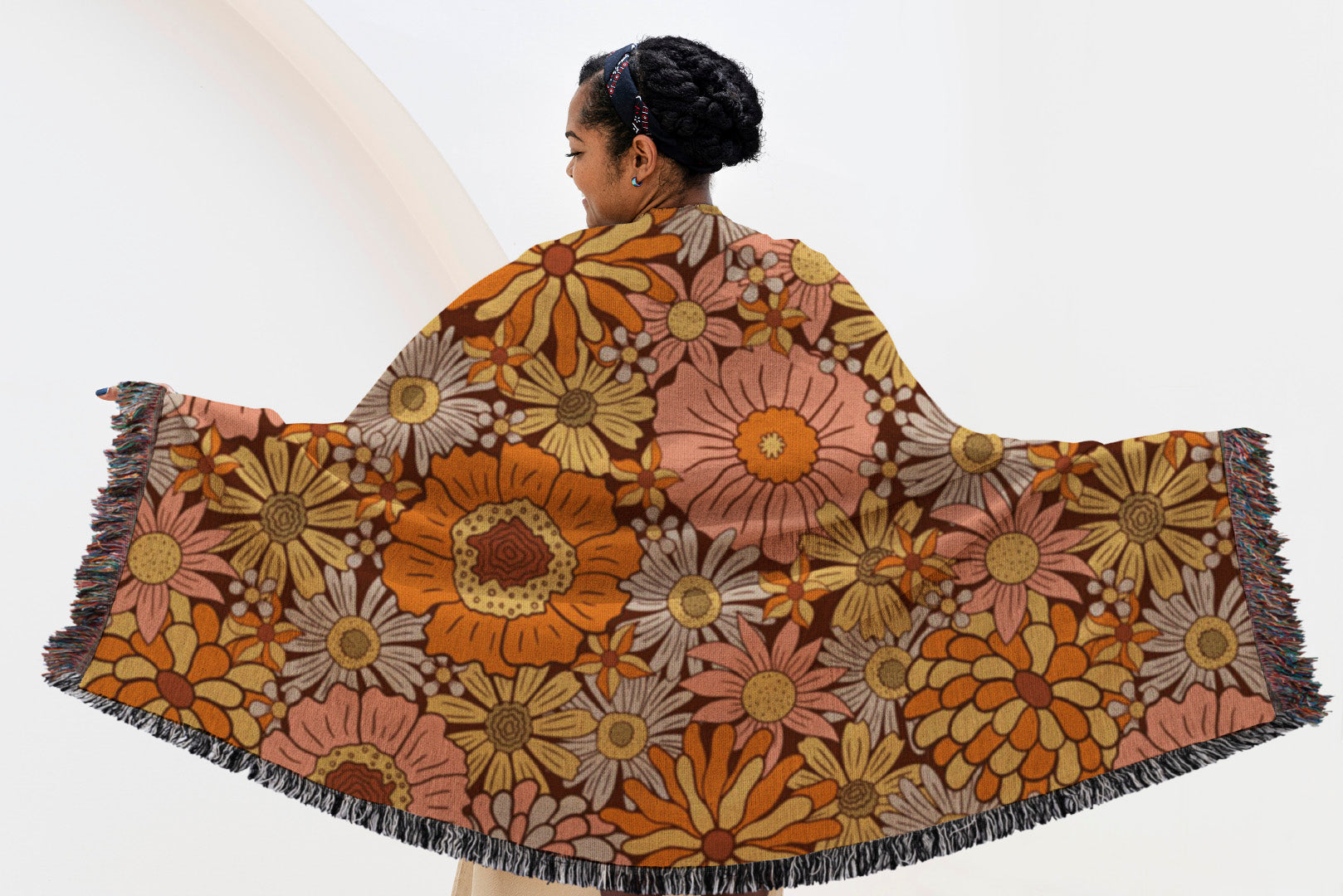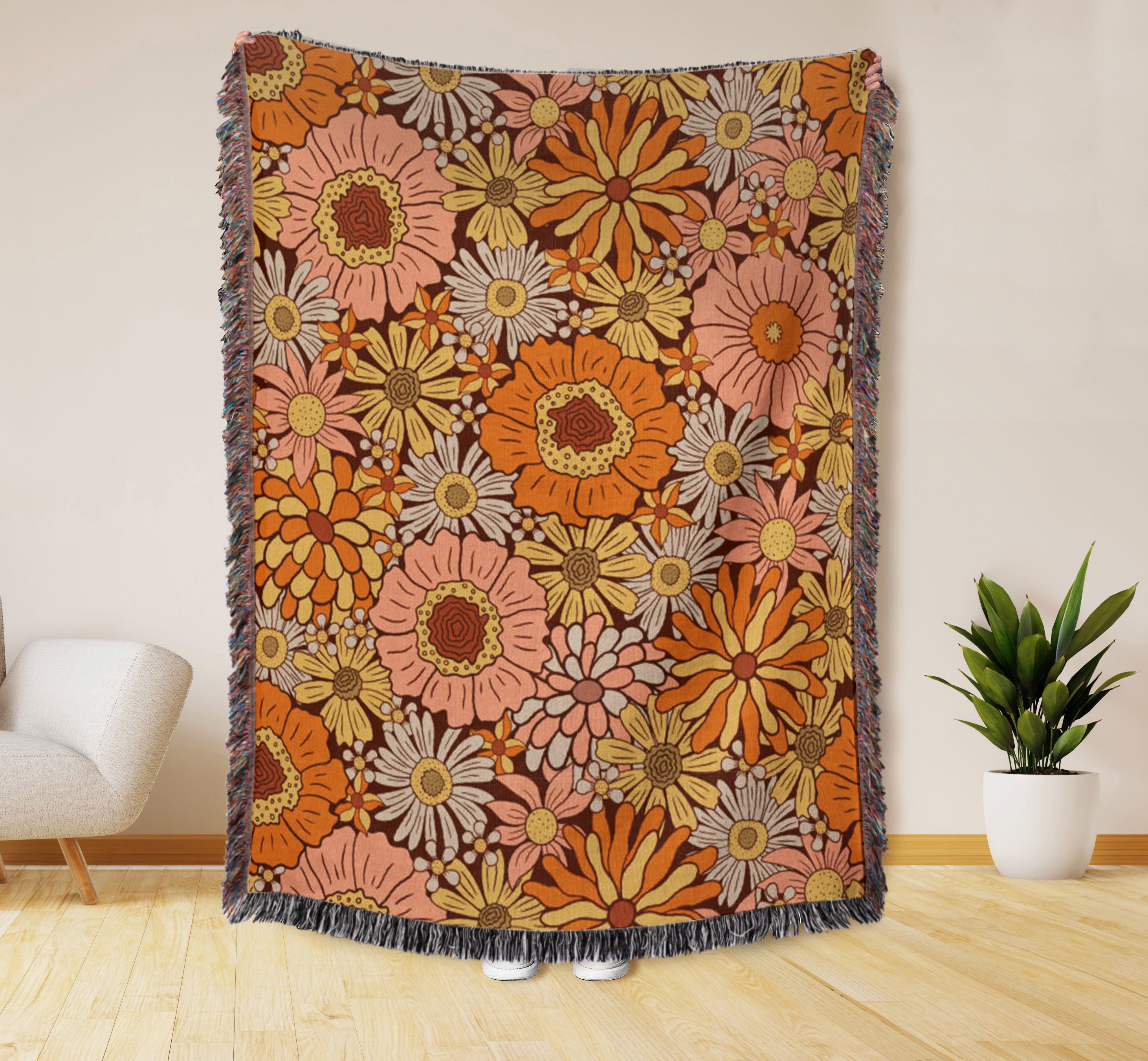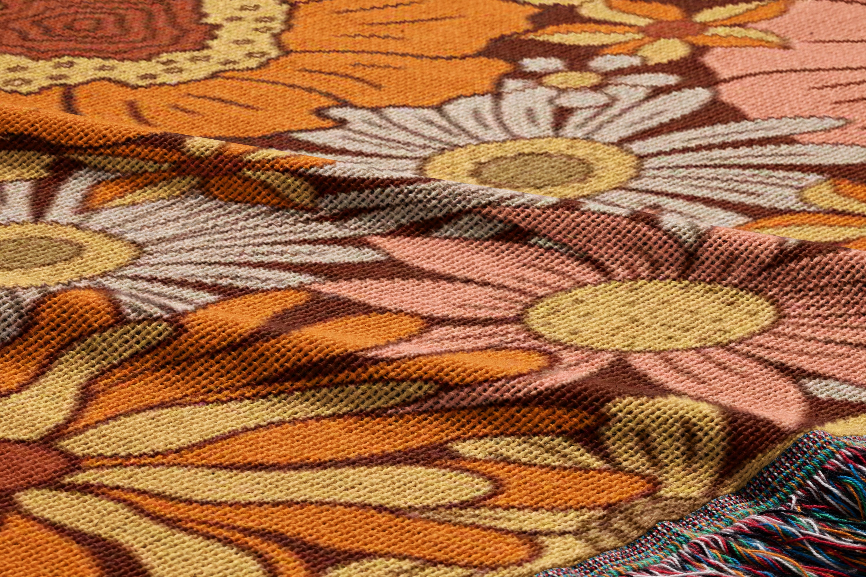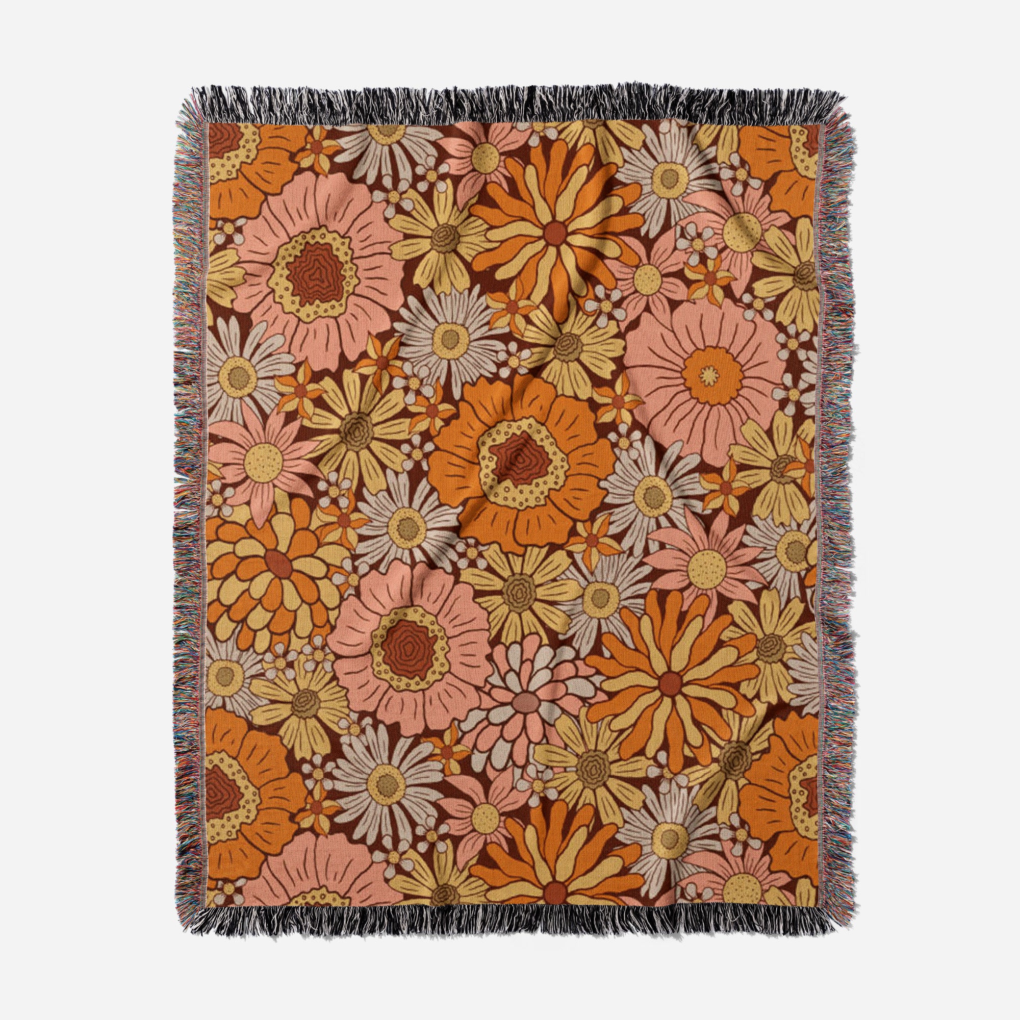 Blooming ‘70s Floral Boho Cotton Woven Throw Blanket BLOOM