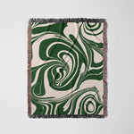 Marble Green Waves Retro Abstract Art Cotton Woven Throw Blanket OLIVE