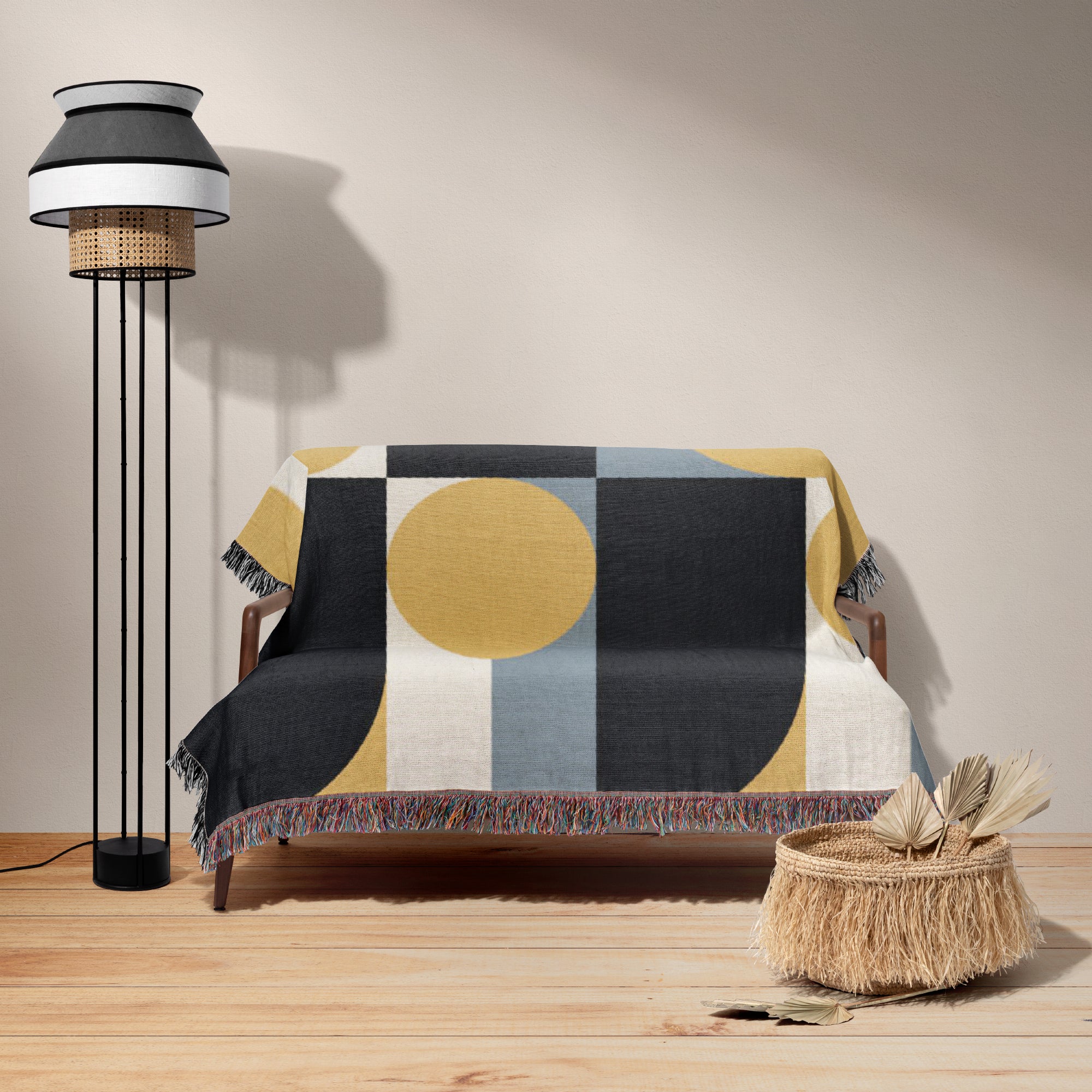 Mid Century Retro Geometric Abstract Art Cotton Woven Throw Blanket JENS