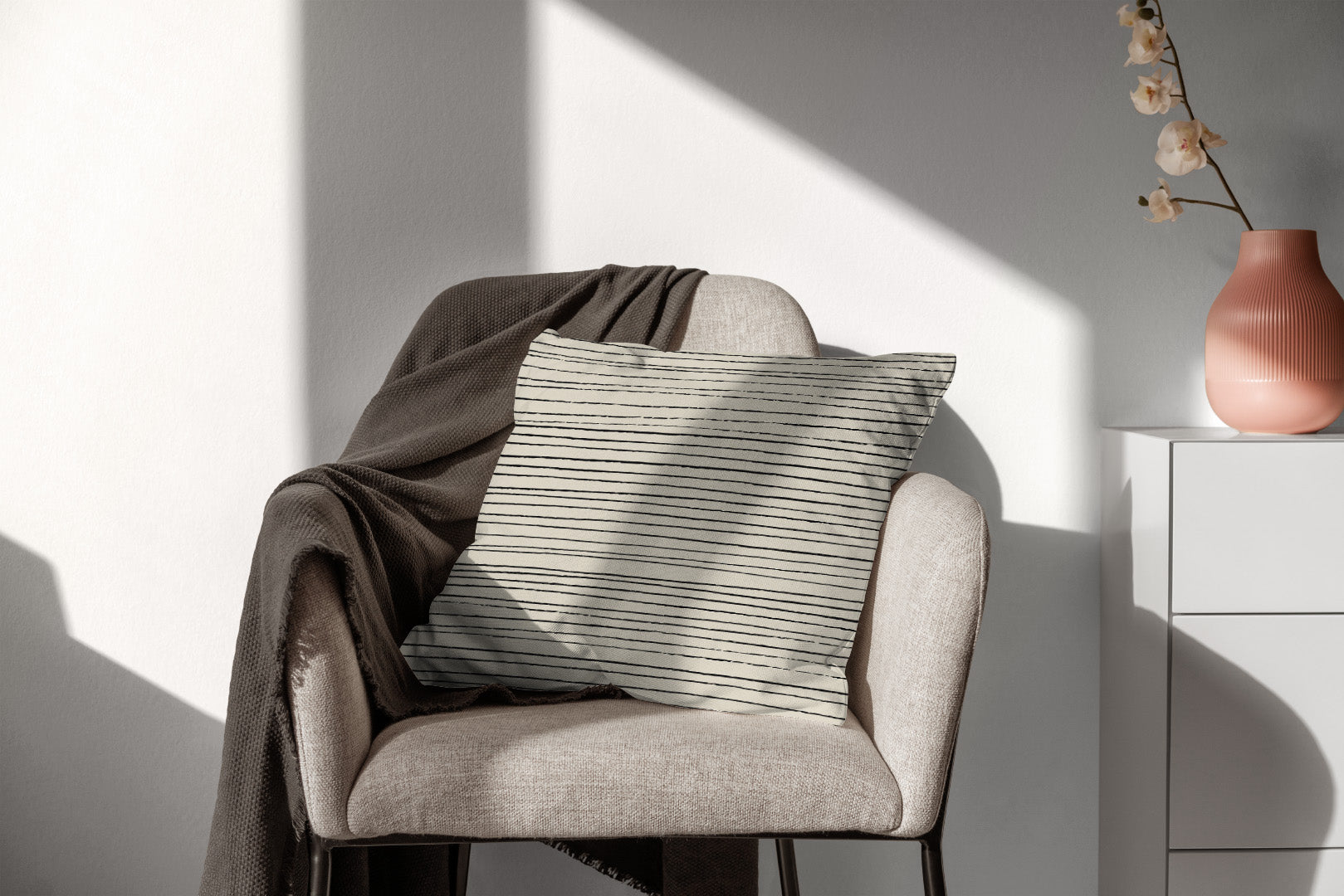 Minimalist Geometric Striped Black Ivory Throw Pillow Cover LYDIA