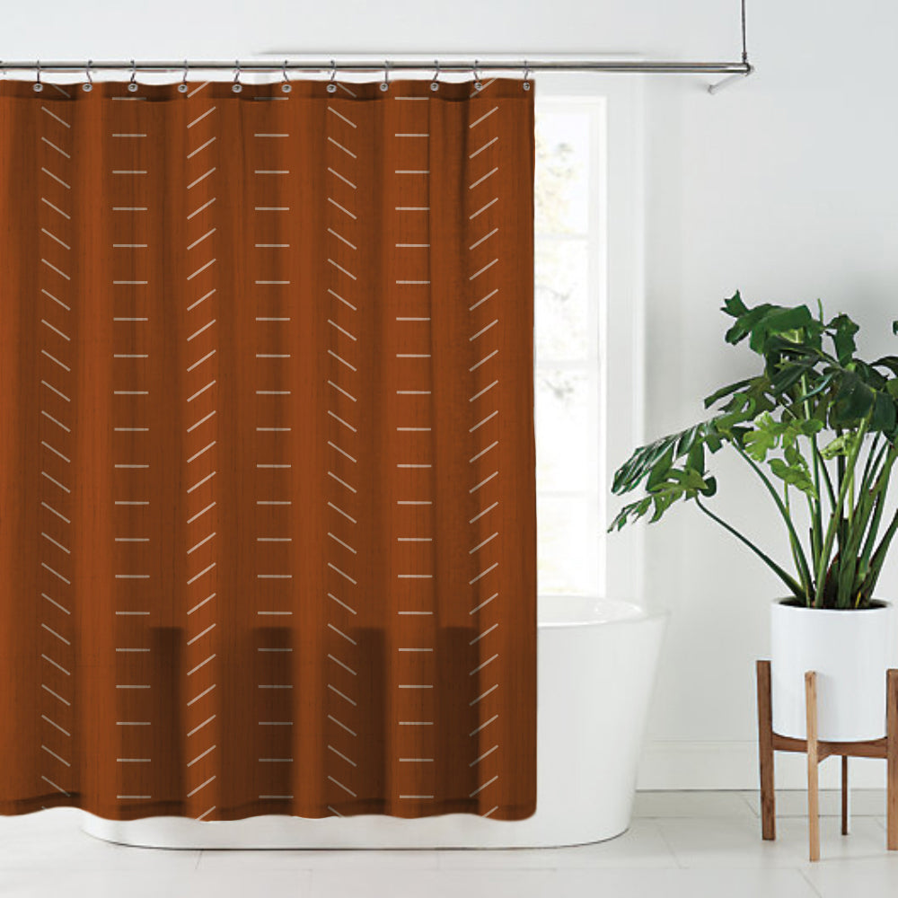 Minimalist Terracotta Rust Burnt Orange Ivory Farmhouse Shower Curtain NIAMEY