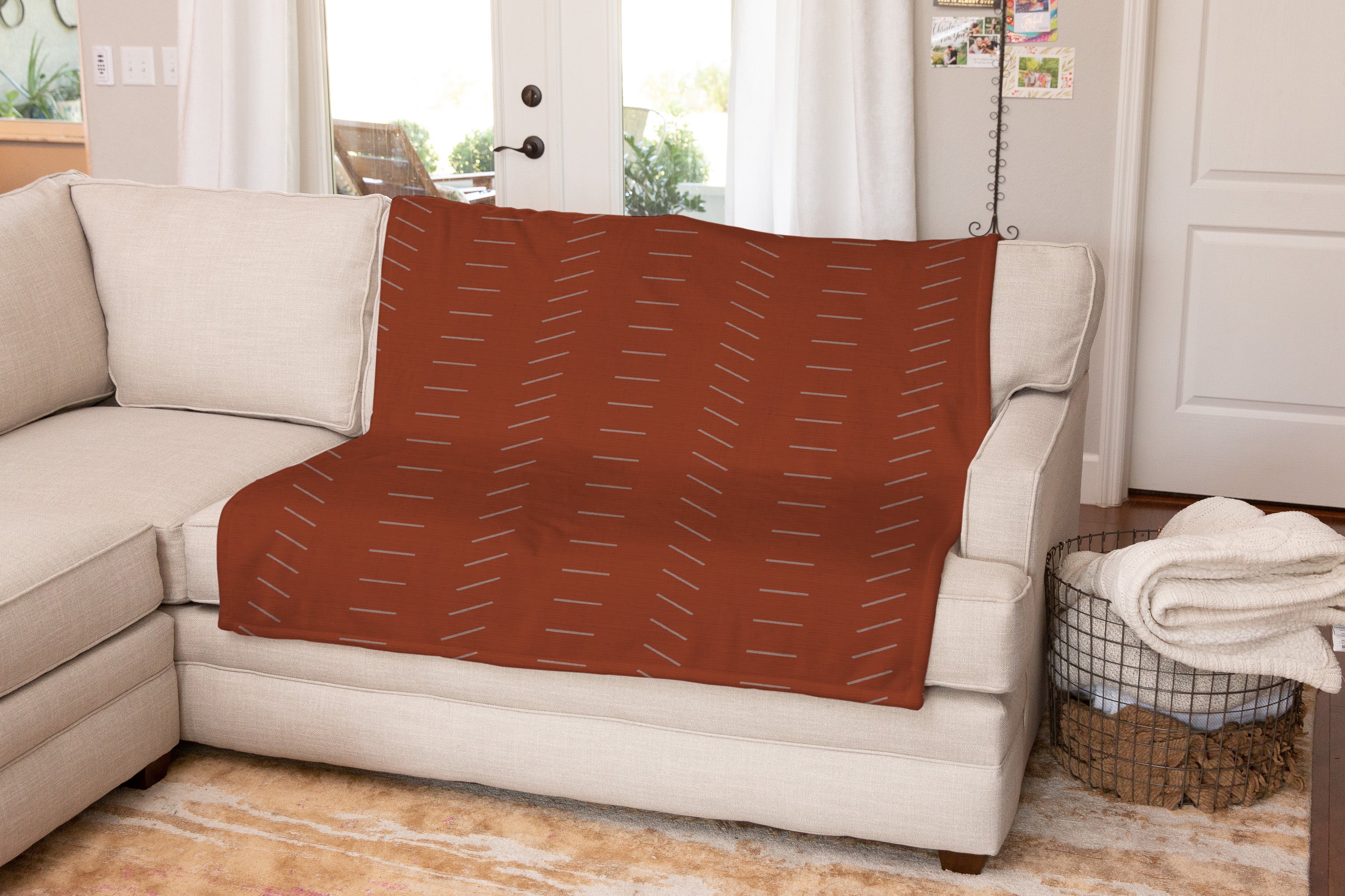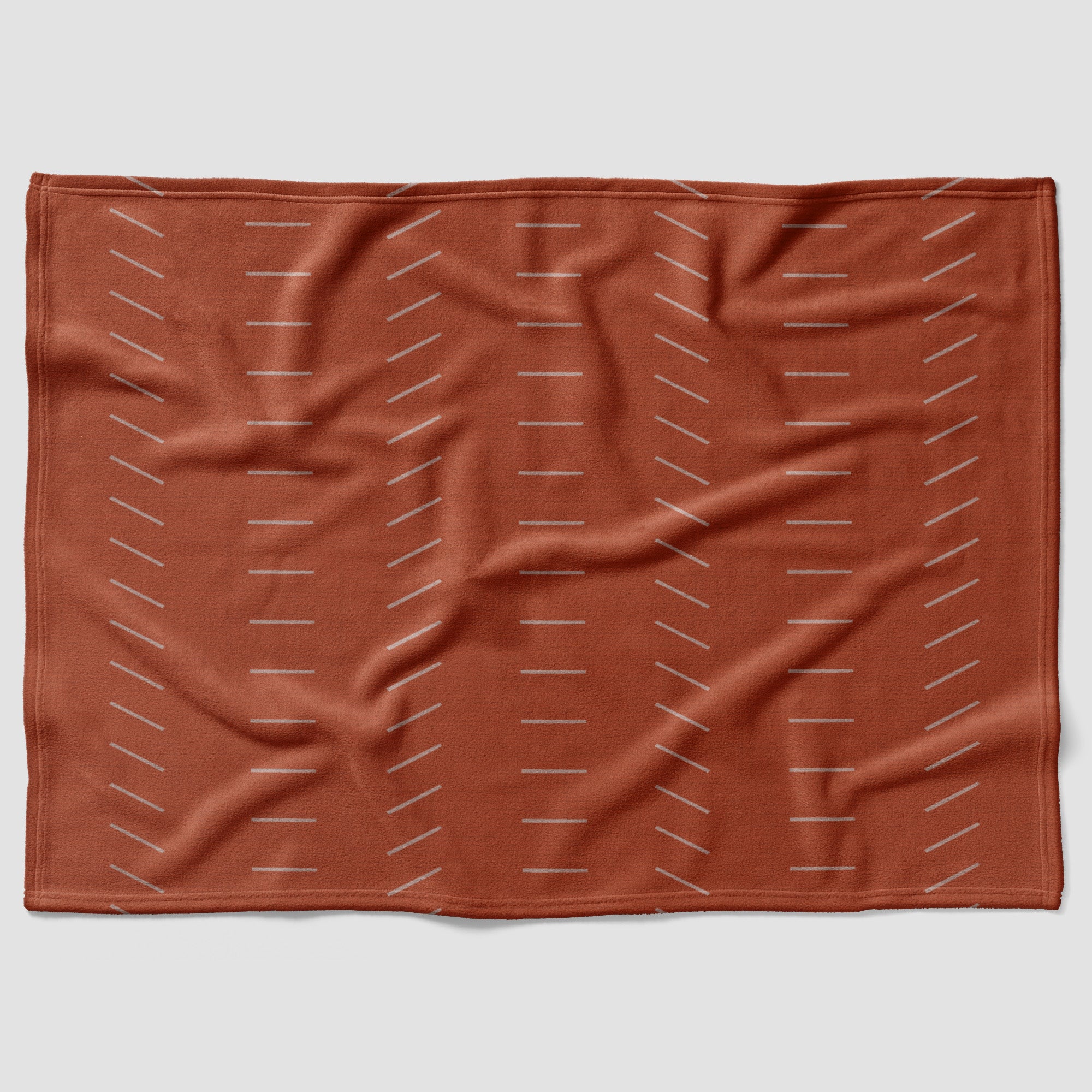 Minimalist Terracotta Rust Burnt Orange Ivory Fleece Throw Blanket NIAMEY