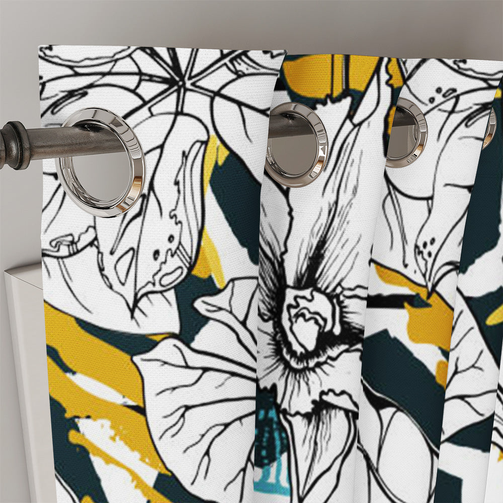 Modern Abstract Botanic Flowers Tropical Blackout Window Curtain DAPHNE