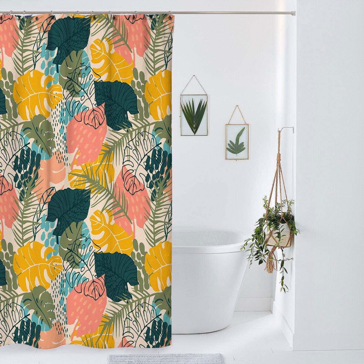 Make your bathroom bold with FIDAH tropical shower curtain and feel completely immersed in an exotic nature, with colorful plants that create a fresh and relaxing atmosphere.