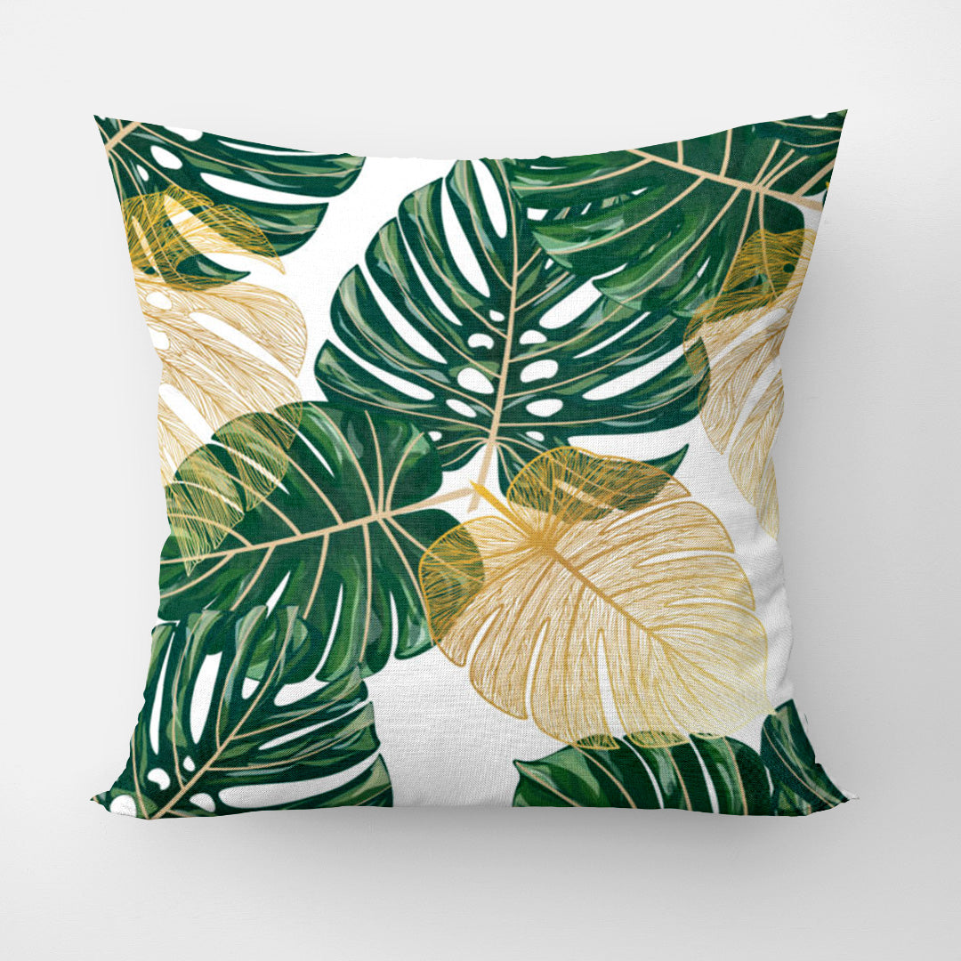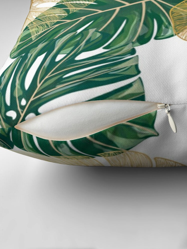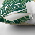 Monstera Leaves Green Gold White Tropical Throw Pillow Cover KAUAI