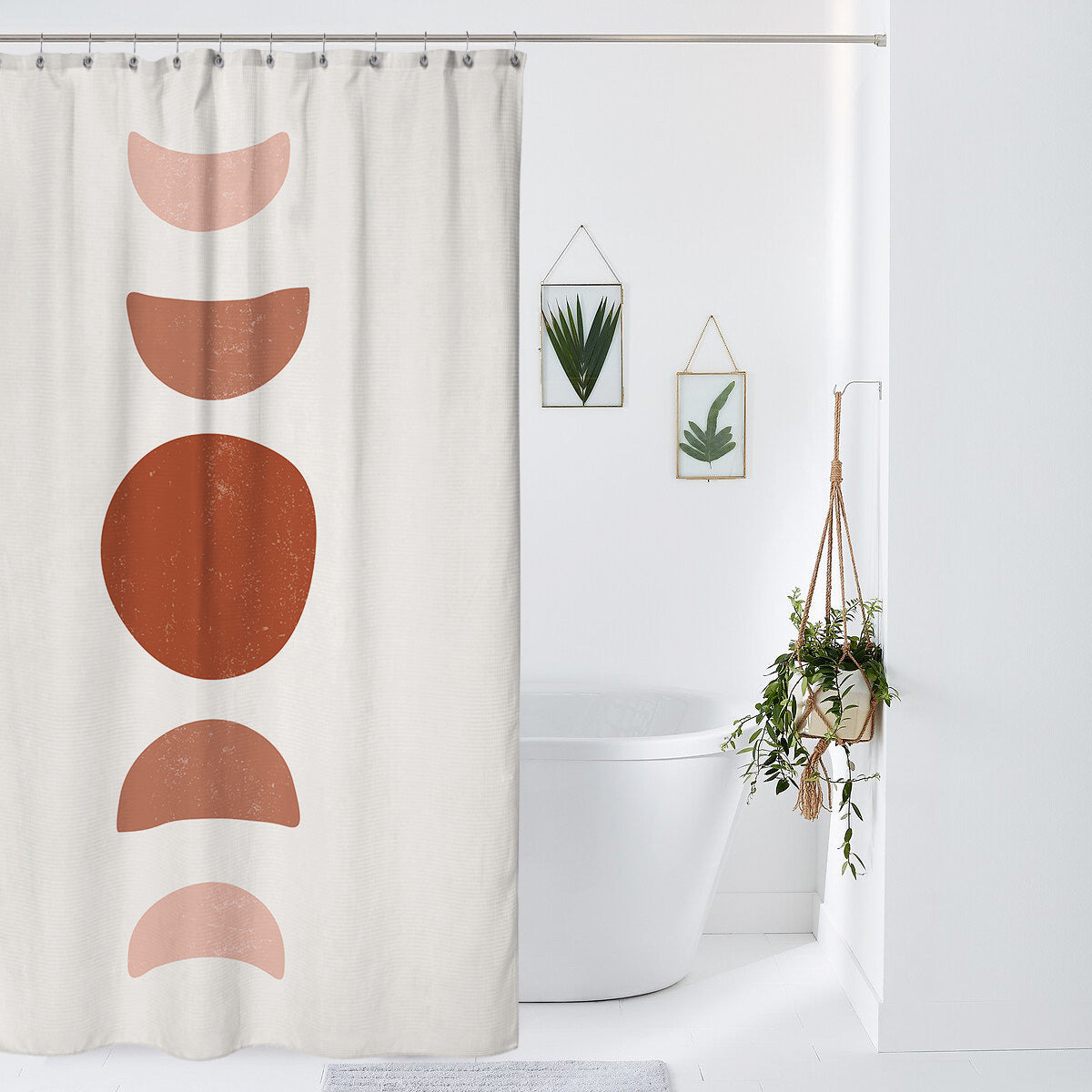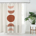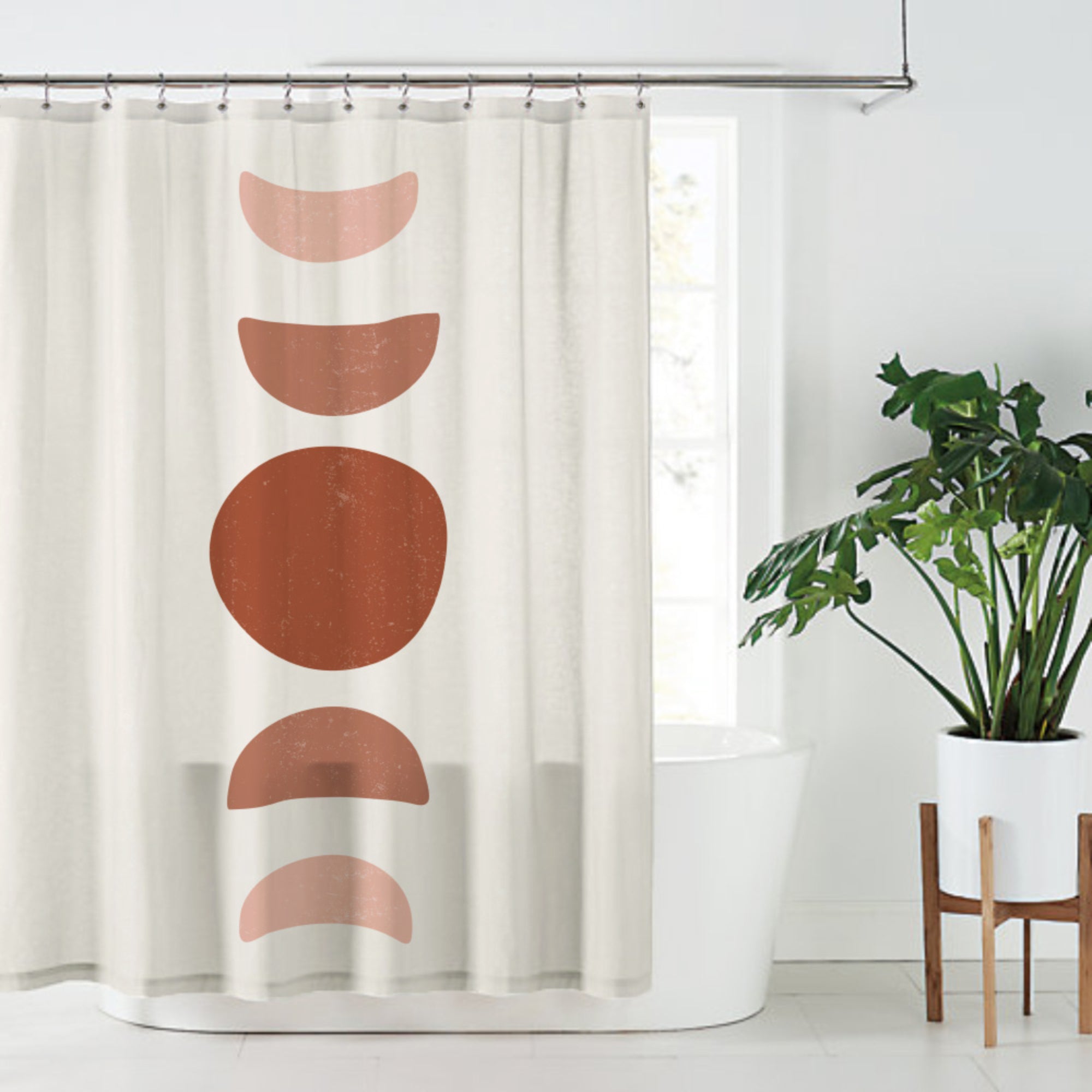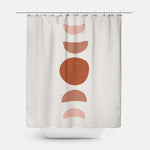 Moon phases shower curtain with rust color shading and dusty pink, the MOON boho chic shower curtain will add charm to your bathroom.