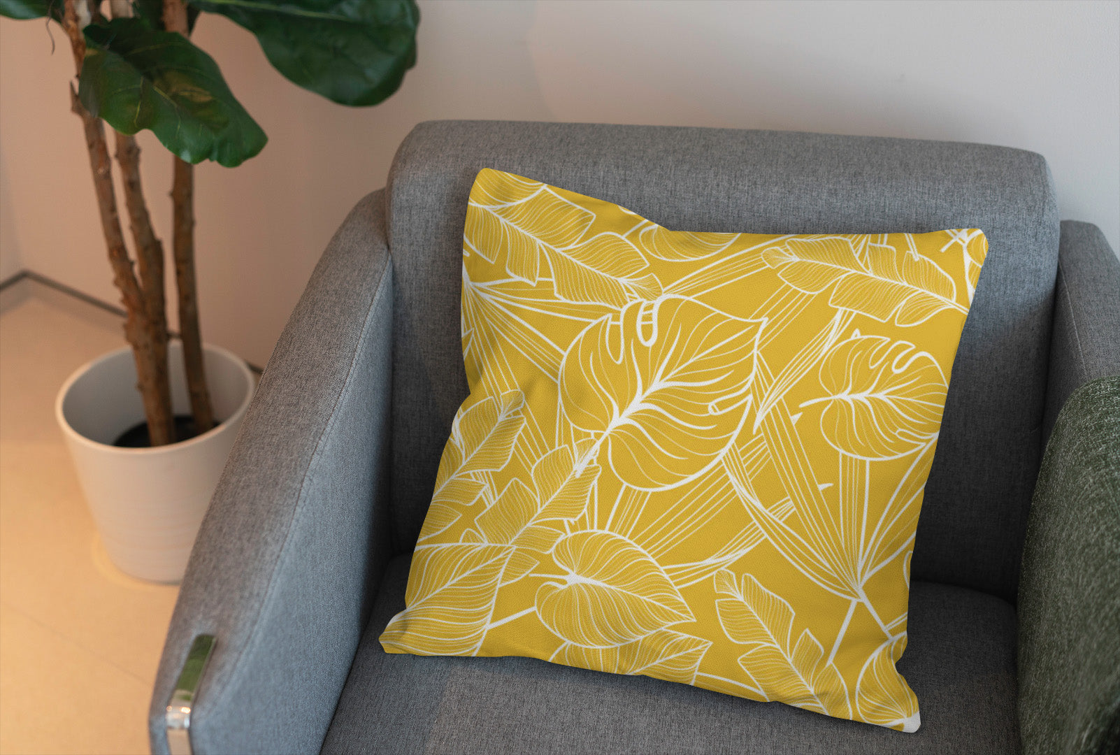 Mustard Yellow Botanical Tropical Throw Pillow Cover JOSY