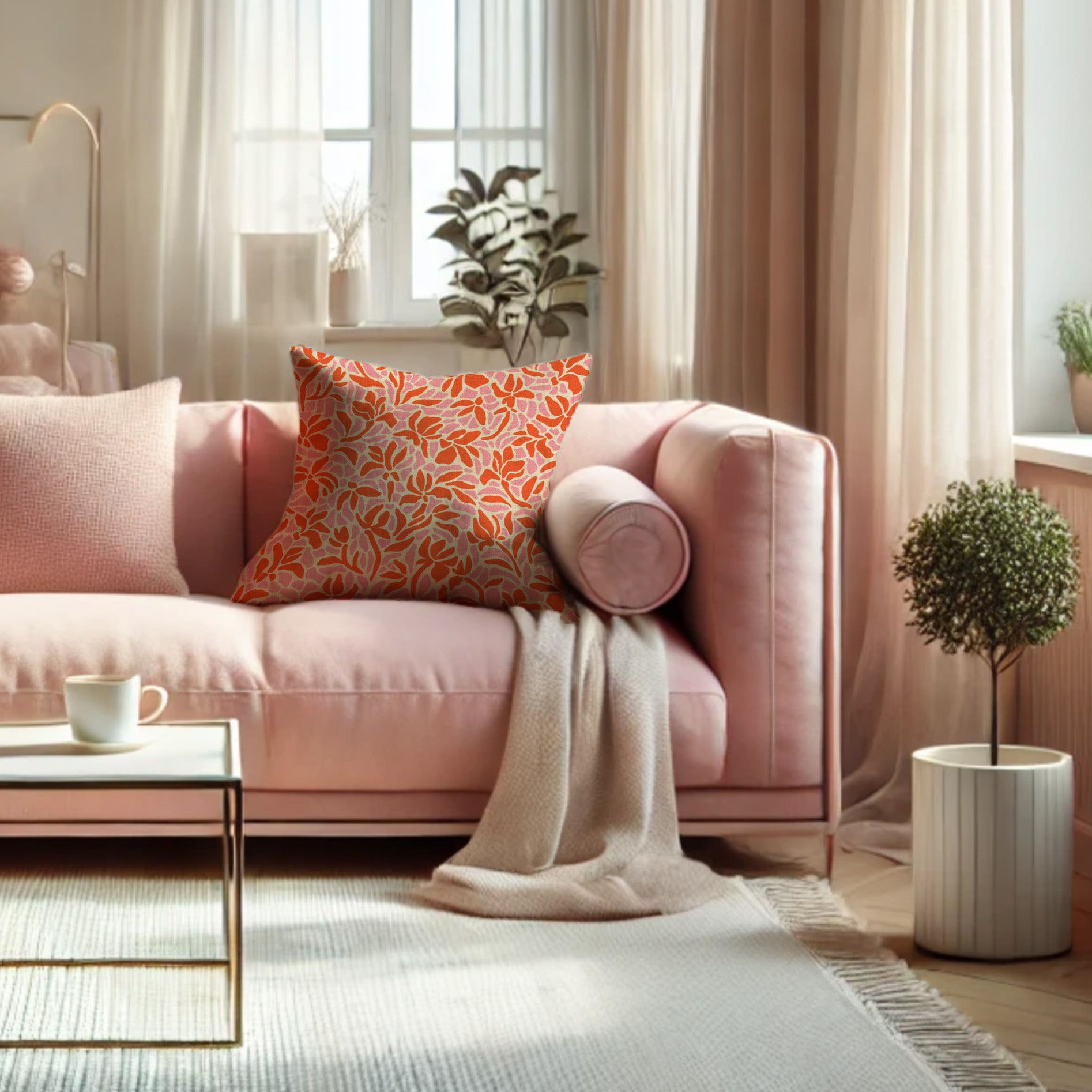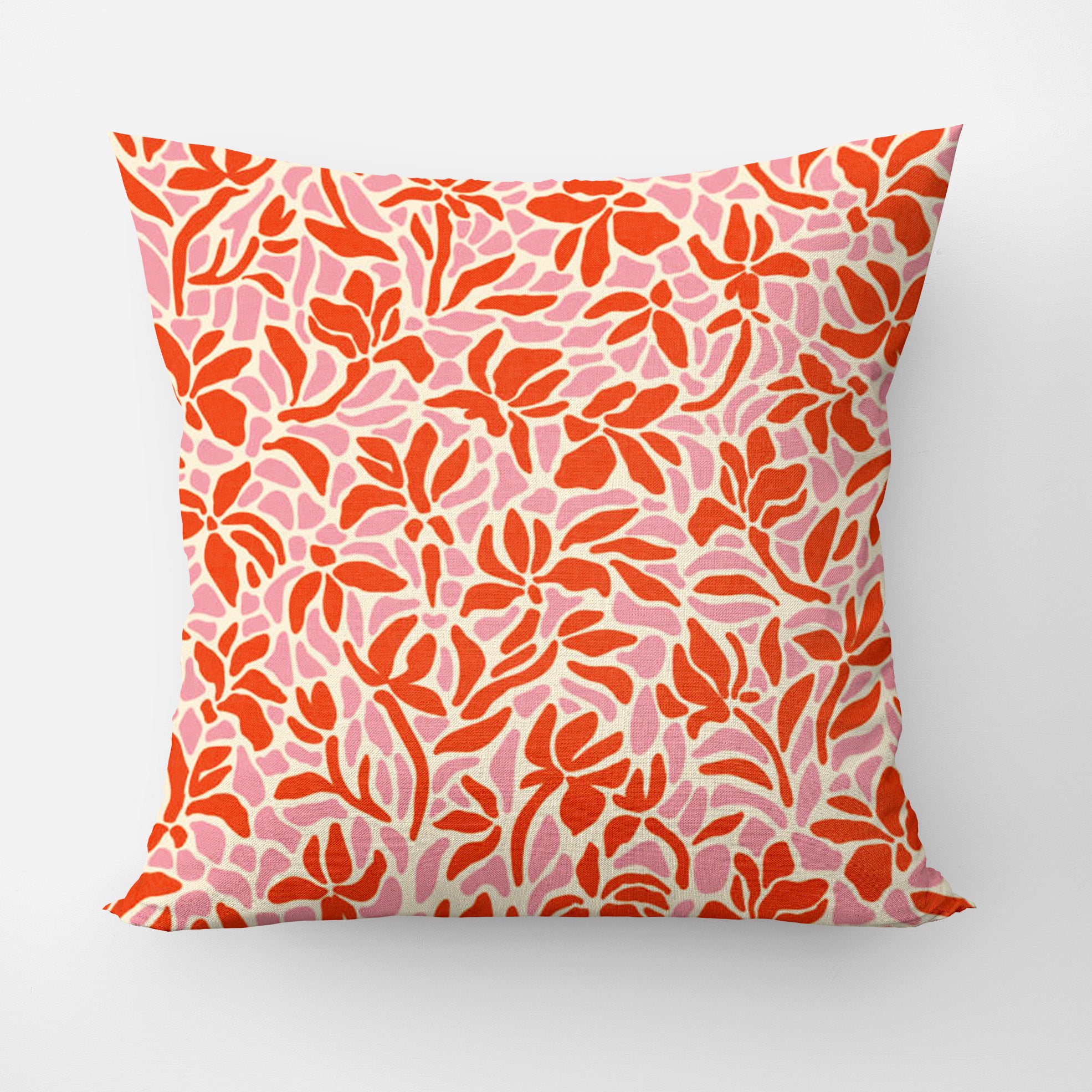 Naive Art Abstract Floral Orange Pink Maximalist Aesthetic Throw Pillow Cover