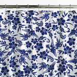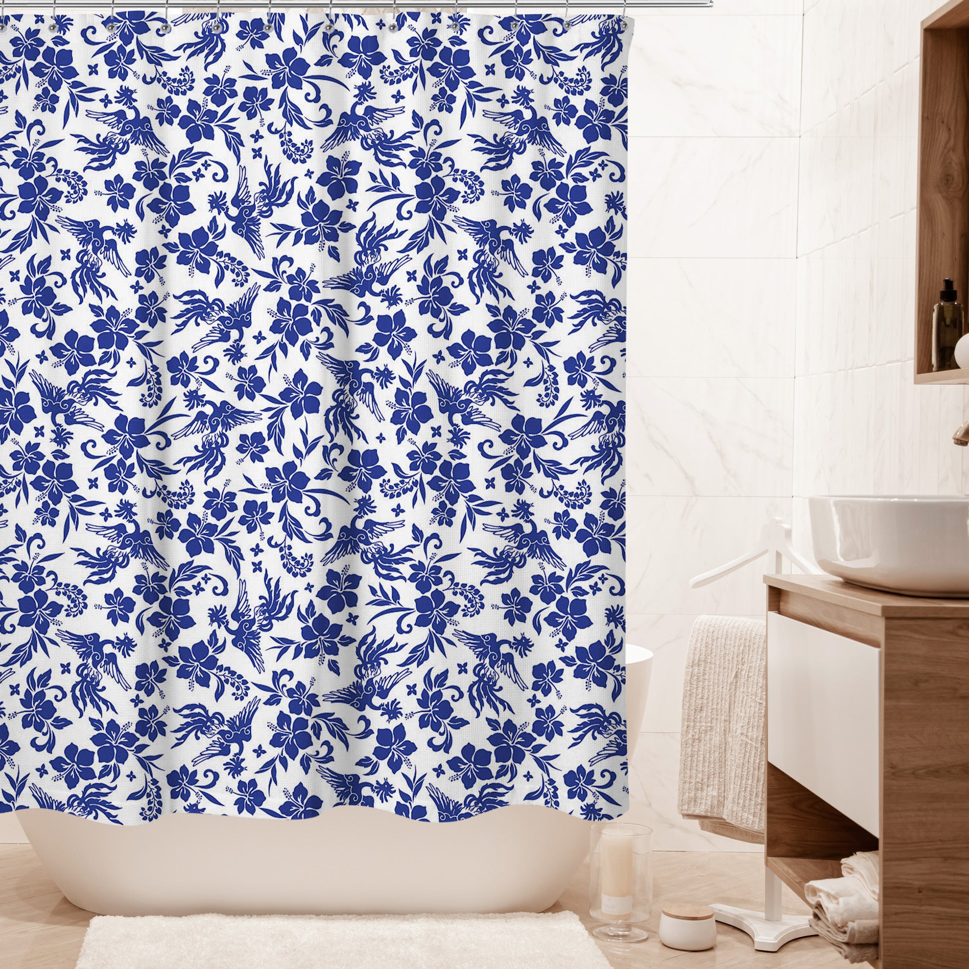 Navy Blue White Phoenix Flowers Tropical Floral Shower Curtain NANEA