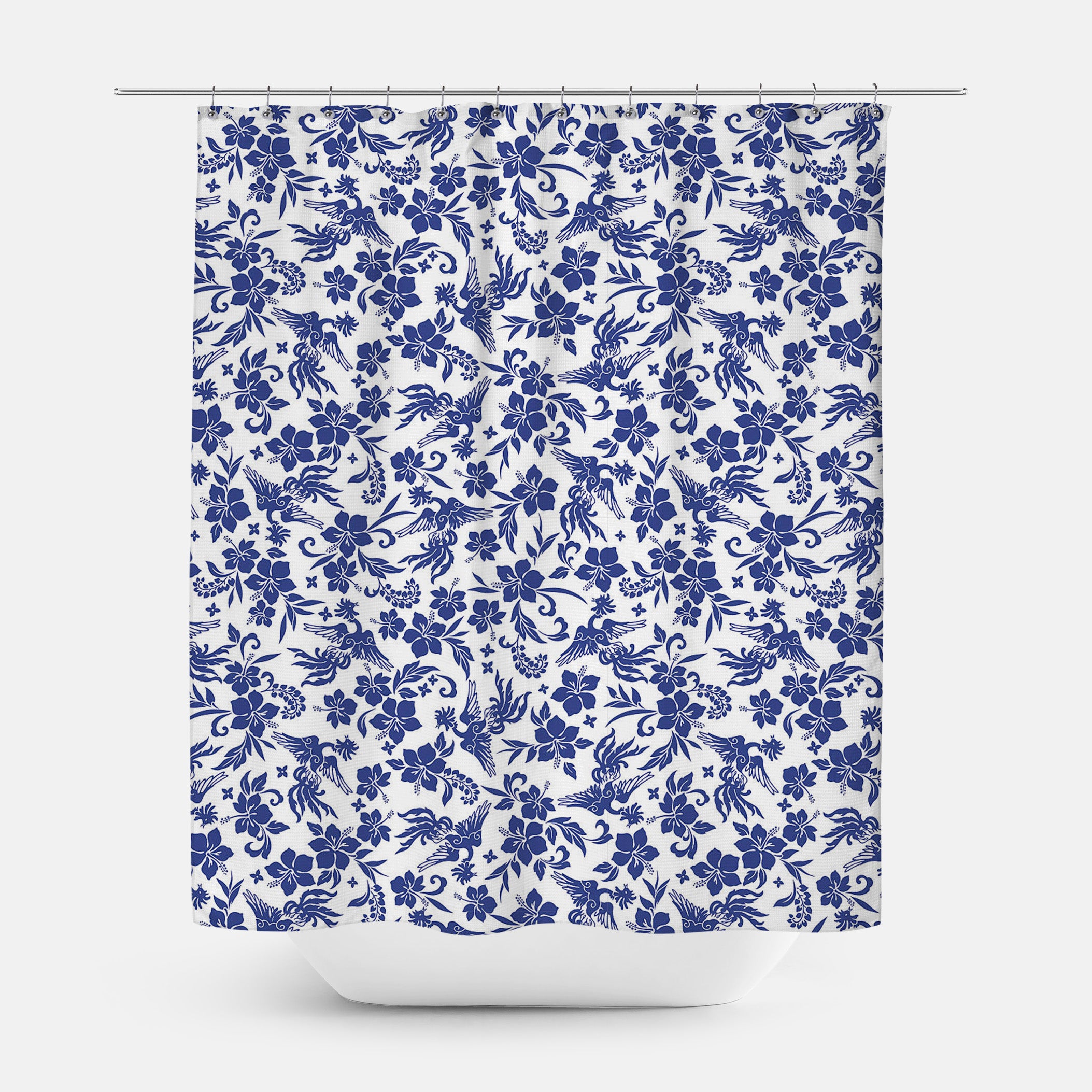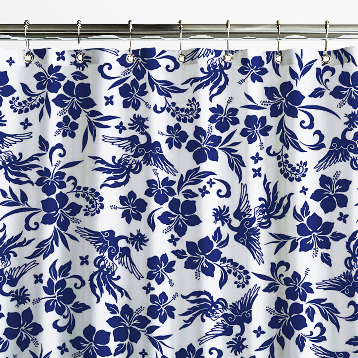 Start your daily routine with some tropical beauty with the NANEA navy blue shower curtain featuring phoenix flowers and start your day off on the right foot!