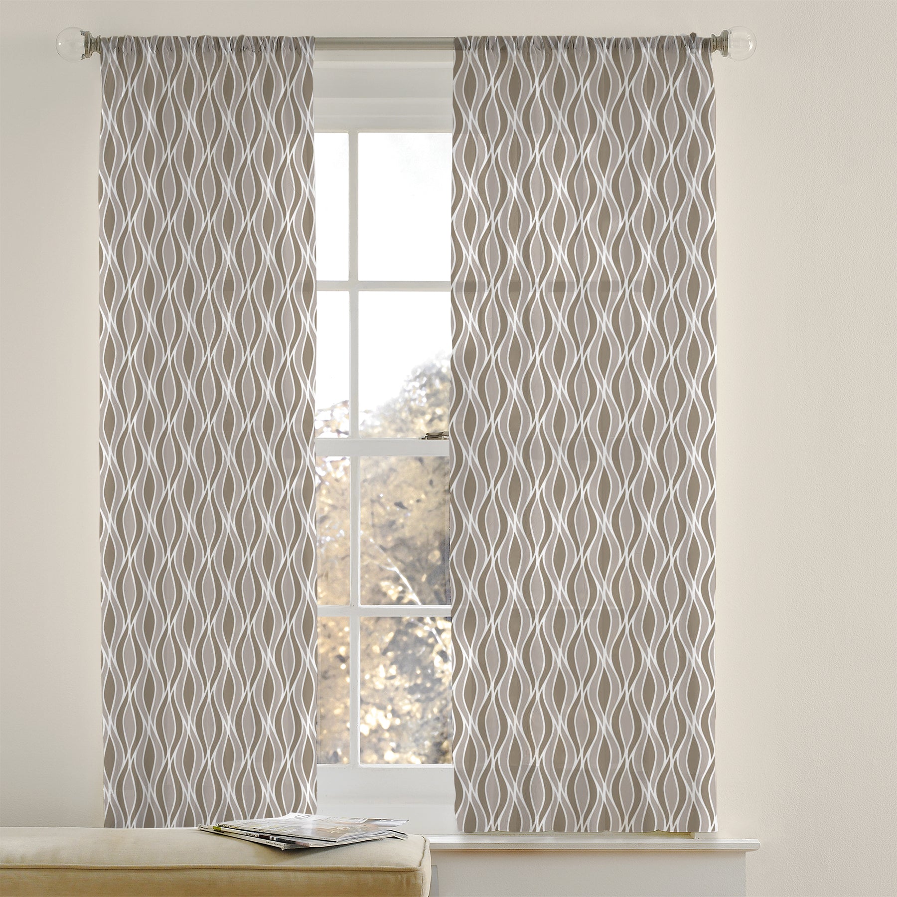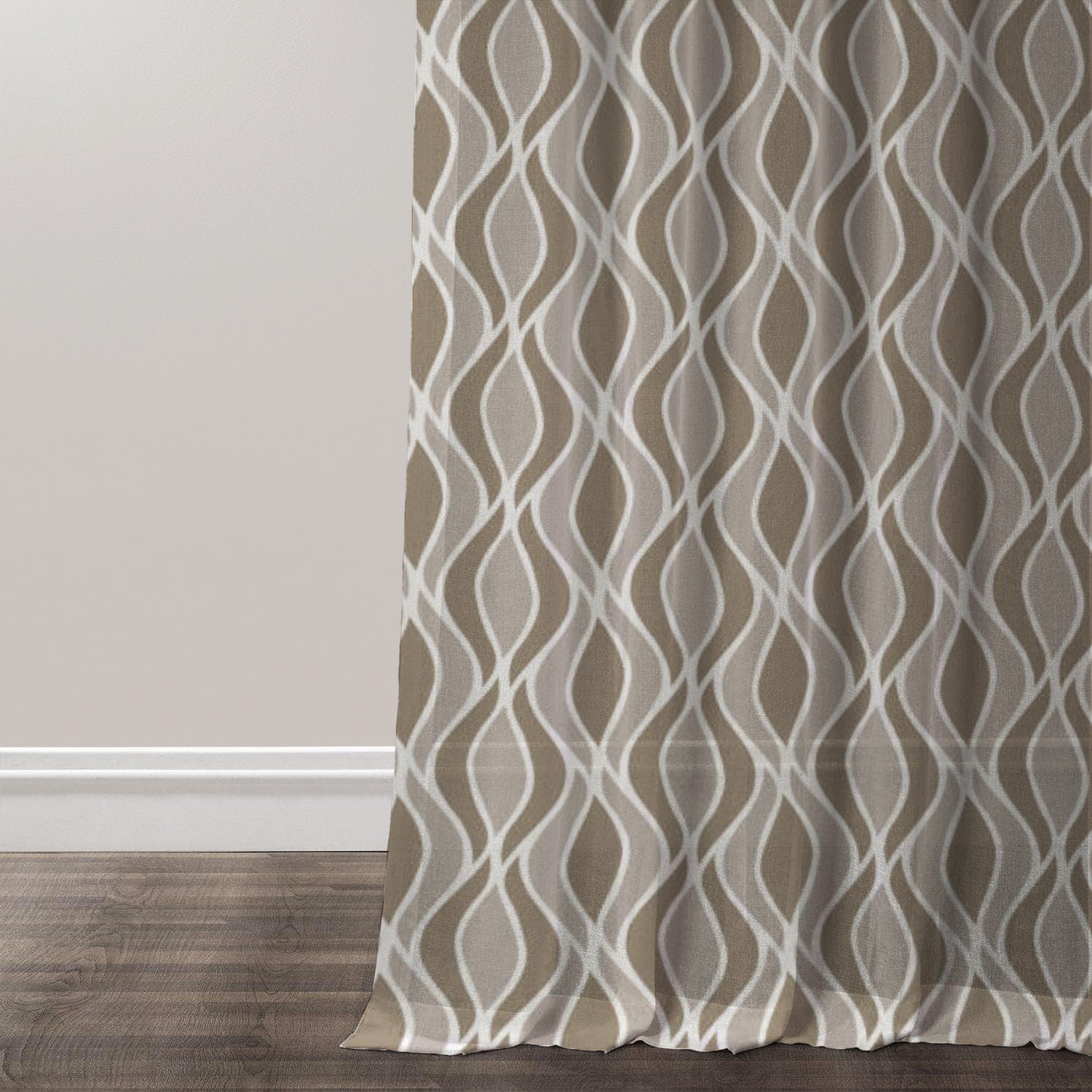 Neutral Abstract Modern Beige Light Brown Semi Sheer Window Curtain CASEY