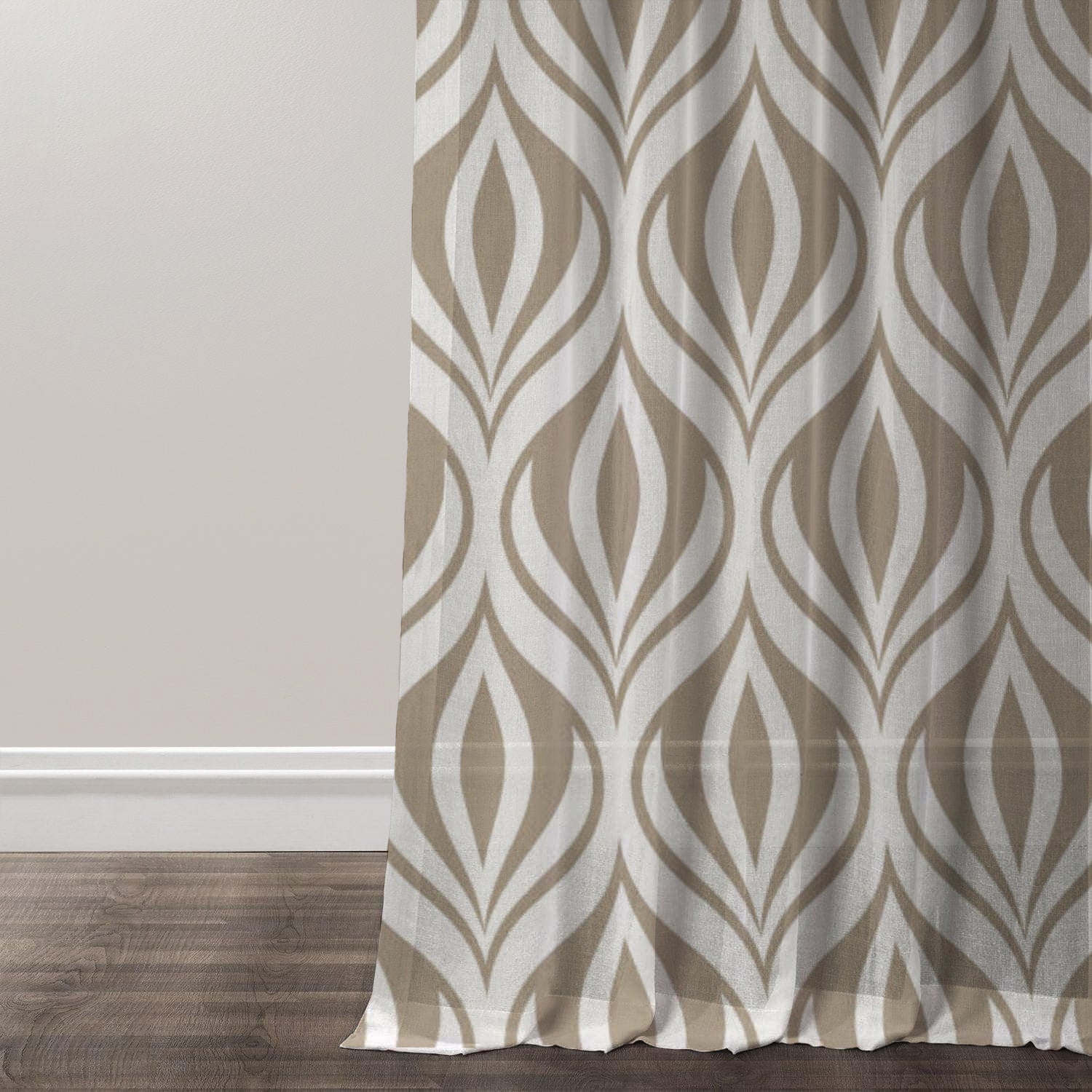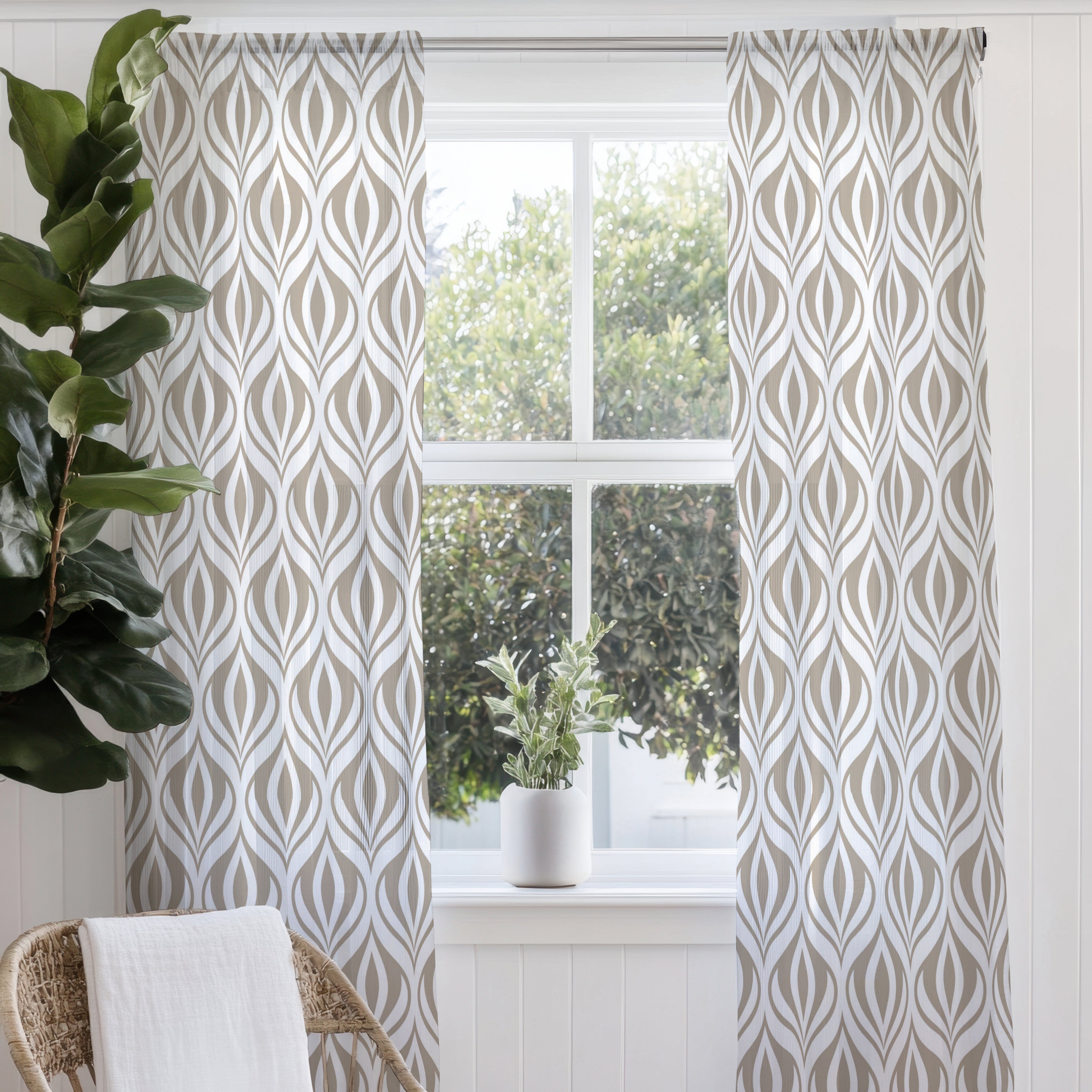 Neutral Abstract Modern Beige White Semi Sheer Window Curtain AVERY