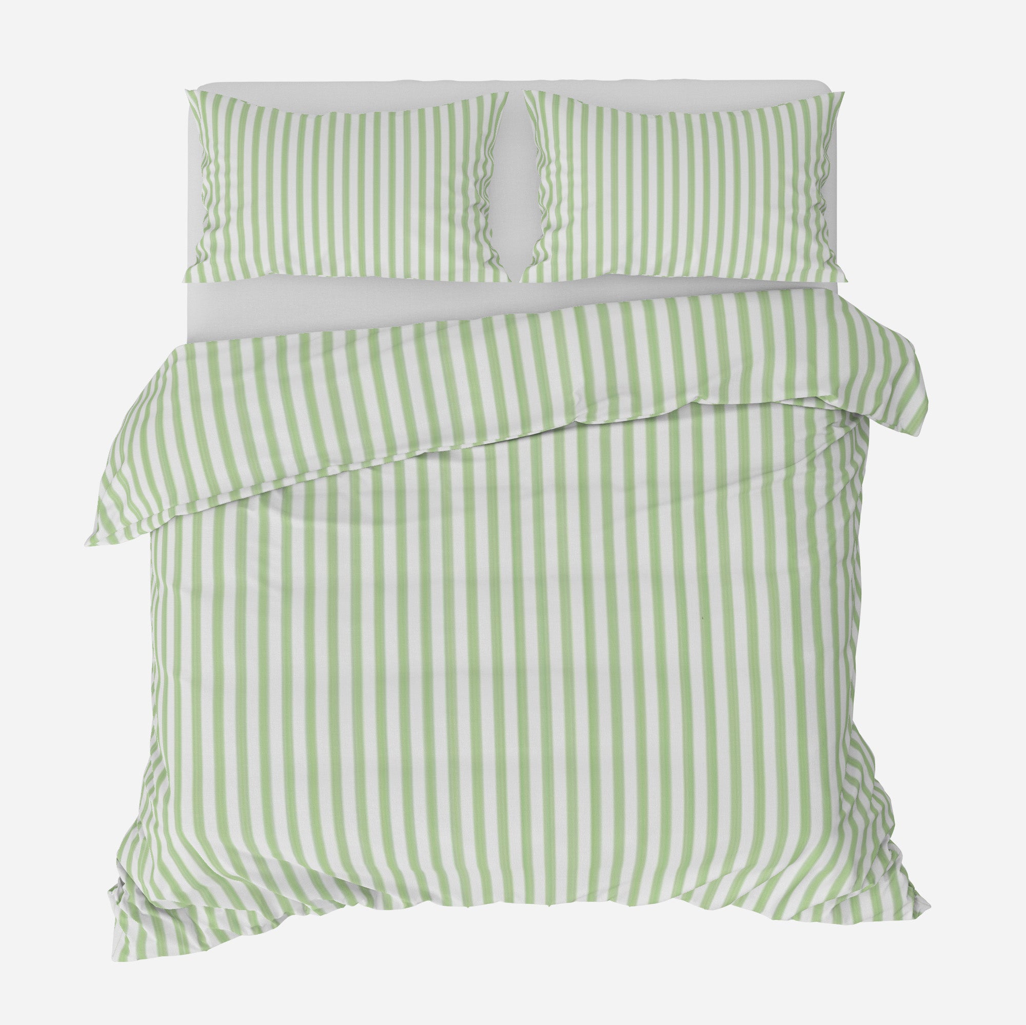 Calm and natural, the Nordic Lines Sage Green duvet cover set features green and white stripes for a balanced, nature-inspired Scandinavian style, reminiscent of fresh, harmonious Nordic landscapes.