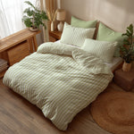 Nordic Minimalist Striped Scandinavian Cotton Duvet Cover Set SAGE GREEN