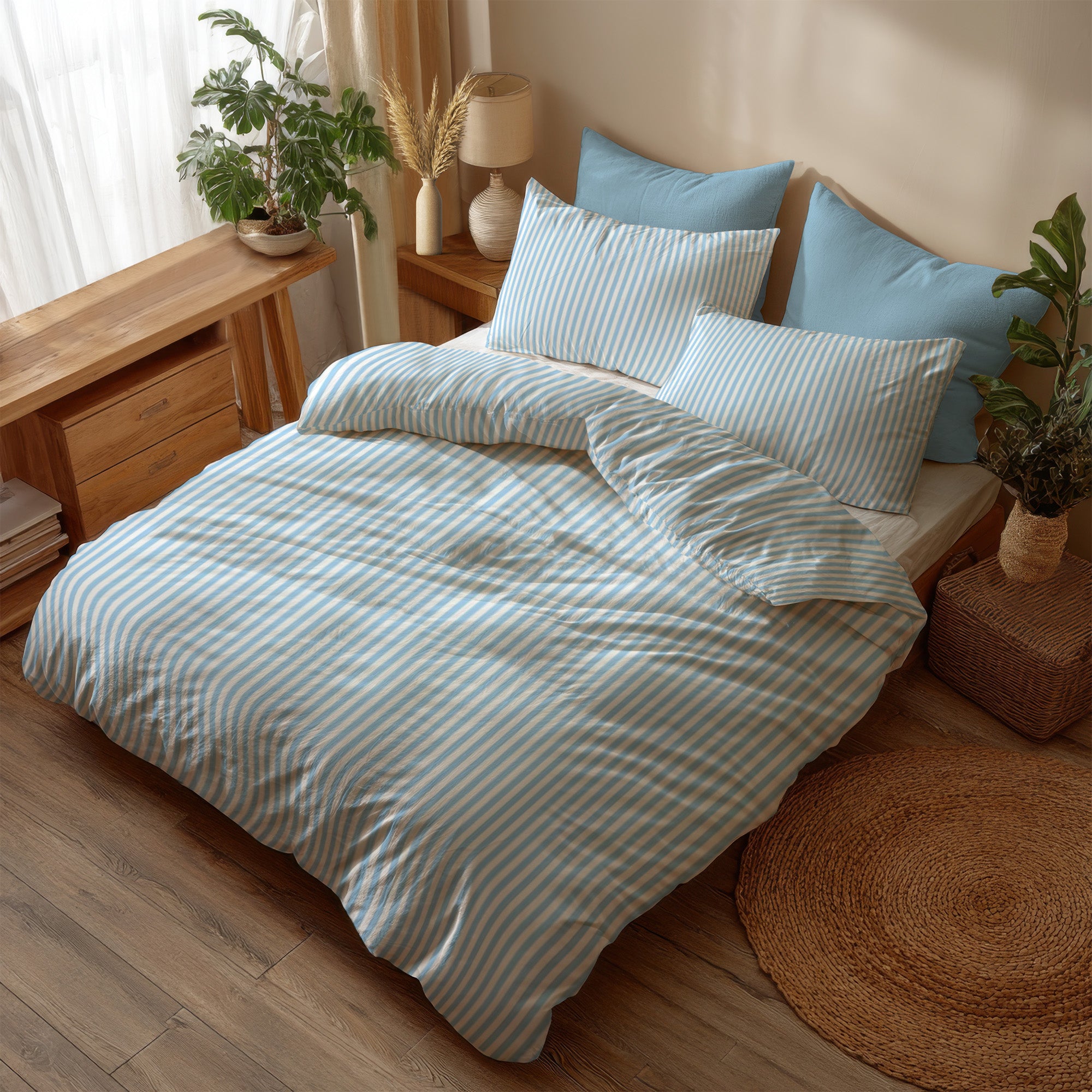 Nordic Minimalist Striped Scandinavian Cotton Duvet Cover Set SKY BLUE