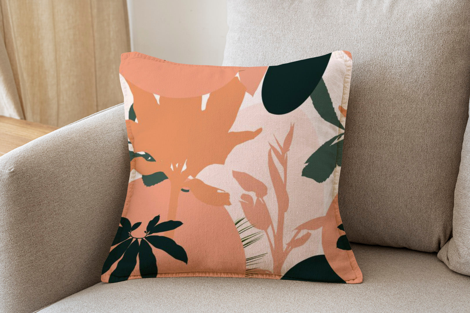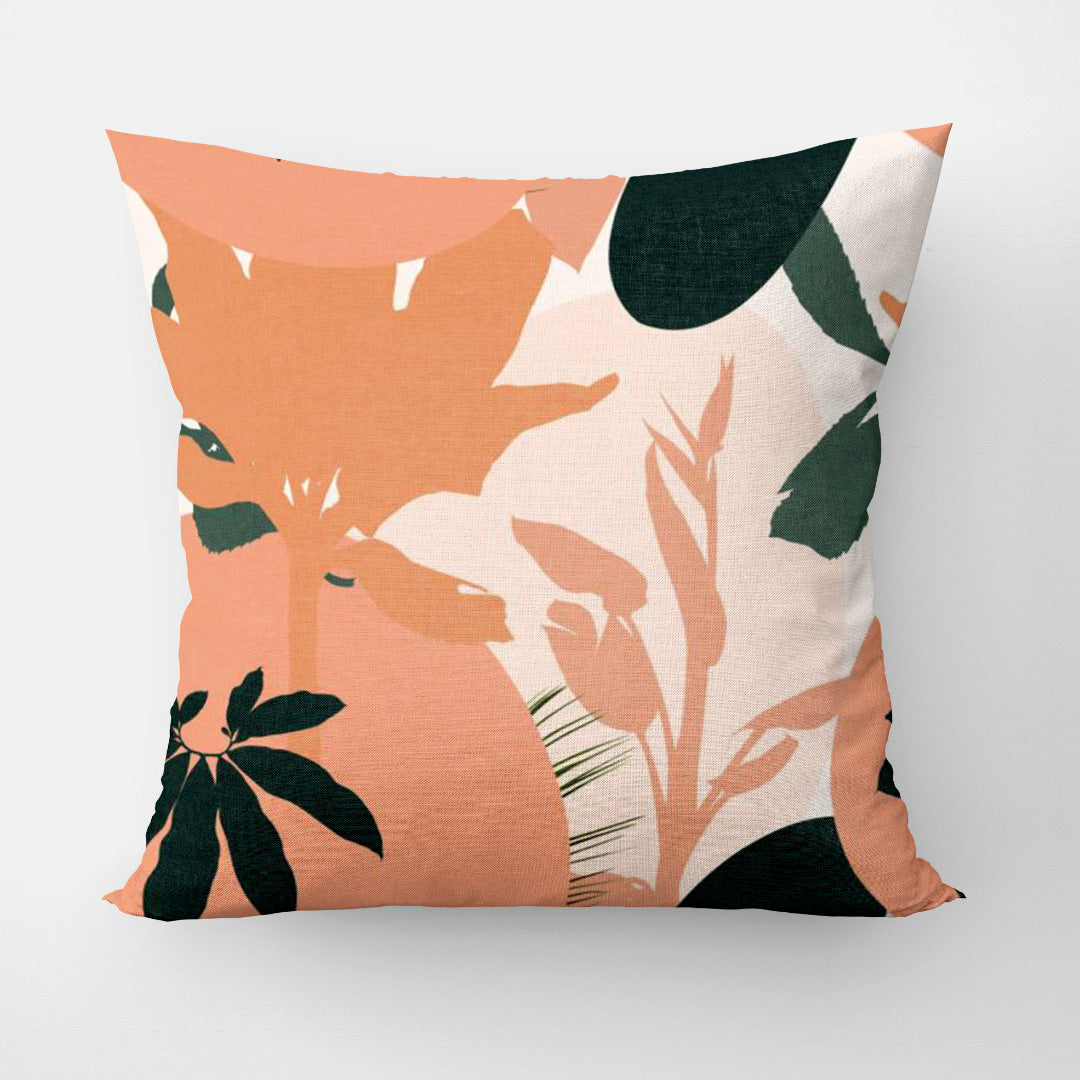 Palm Leaves Silhouette Abstract Salmon Orange Floral Throw Pillow Cover TALEA