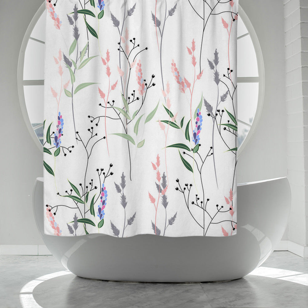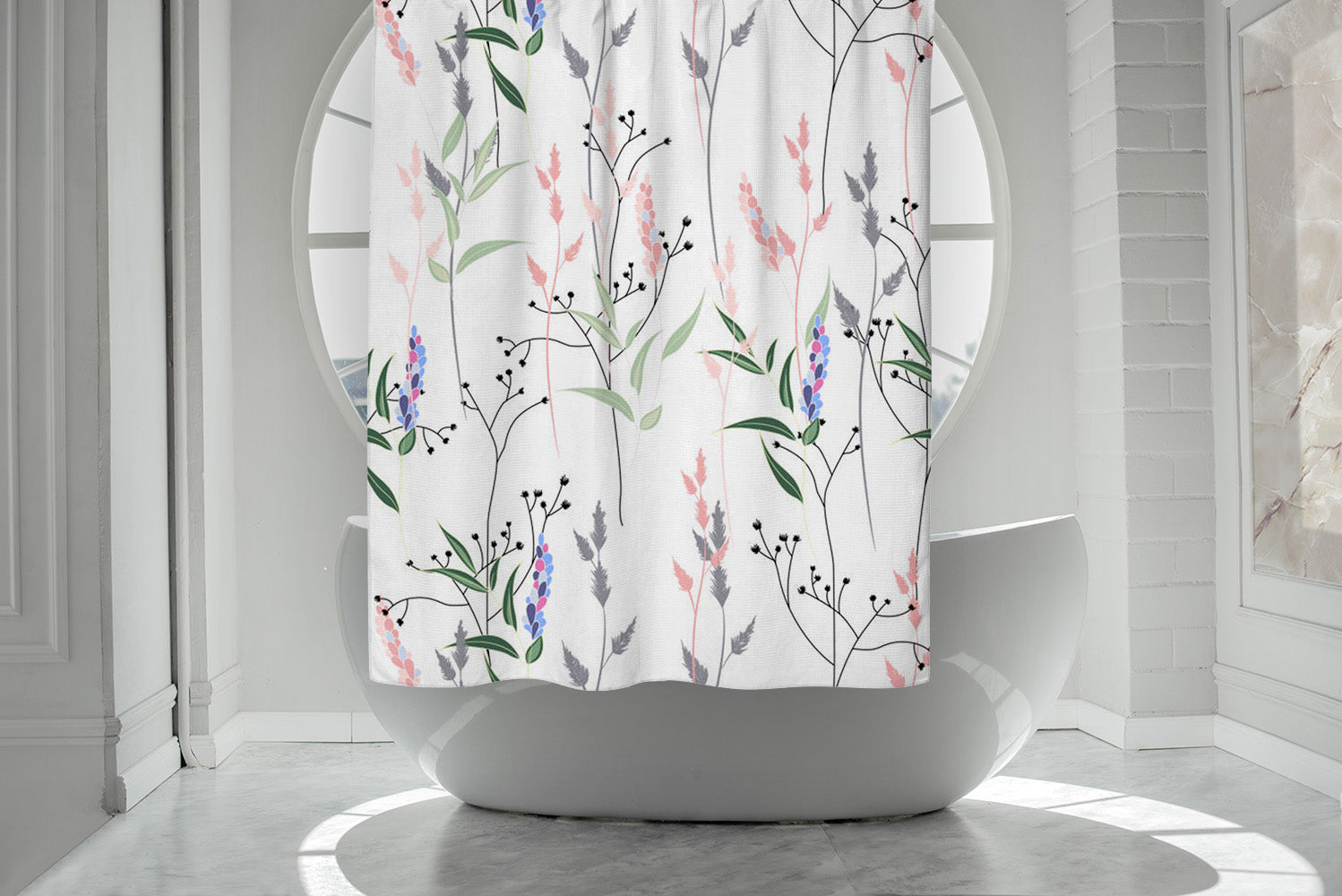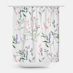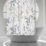 Bring an ethereal and natural touch to your bathroom with the INES shower curtain with a tiny wildflowers on a white background.