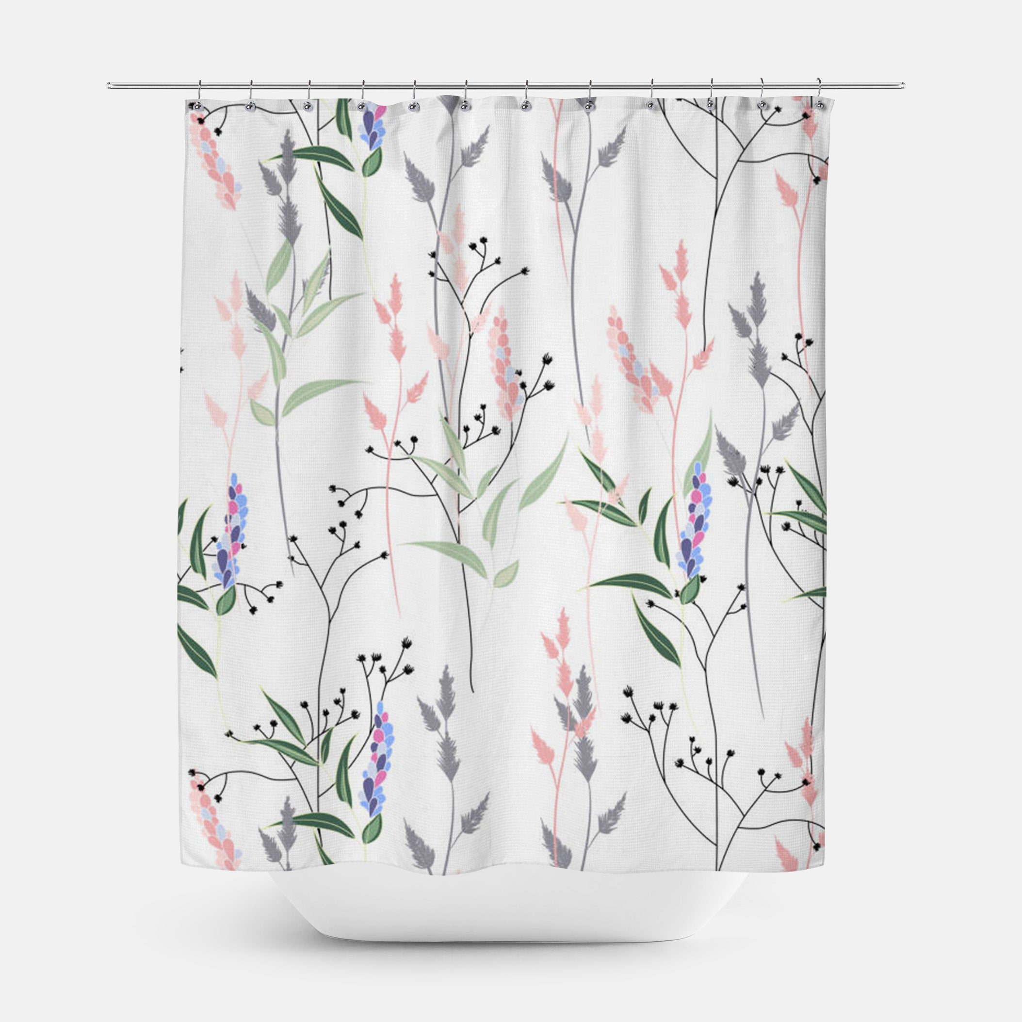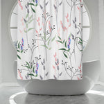 Pastel Tiny Wild Flowers Grasses White Botanical Floral Shower Curtain INES