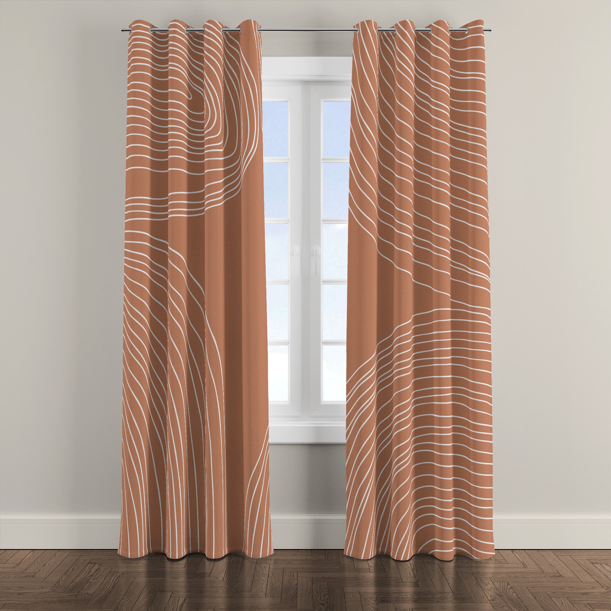 The MAYE Curtains will turn any space into a cozy and inviting sanctuary. With their unique blend of mid-century modern designs and boho accents, the MAYE Curtains feature toned down earthy terracotta tones with soft rainbow accents breathes life into any room. Earthy colors create calmness, creating a peaceful atmosphere in a living room, bedroom or creative space!