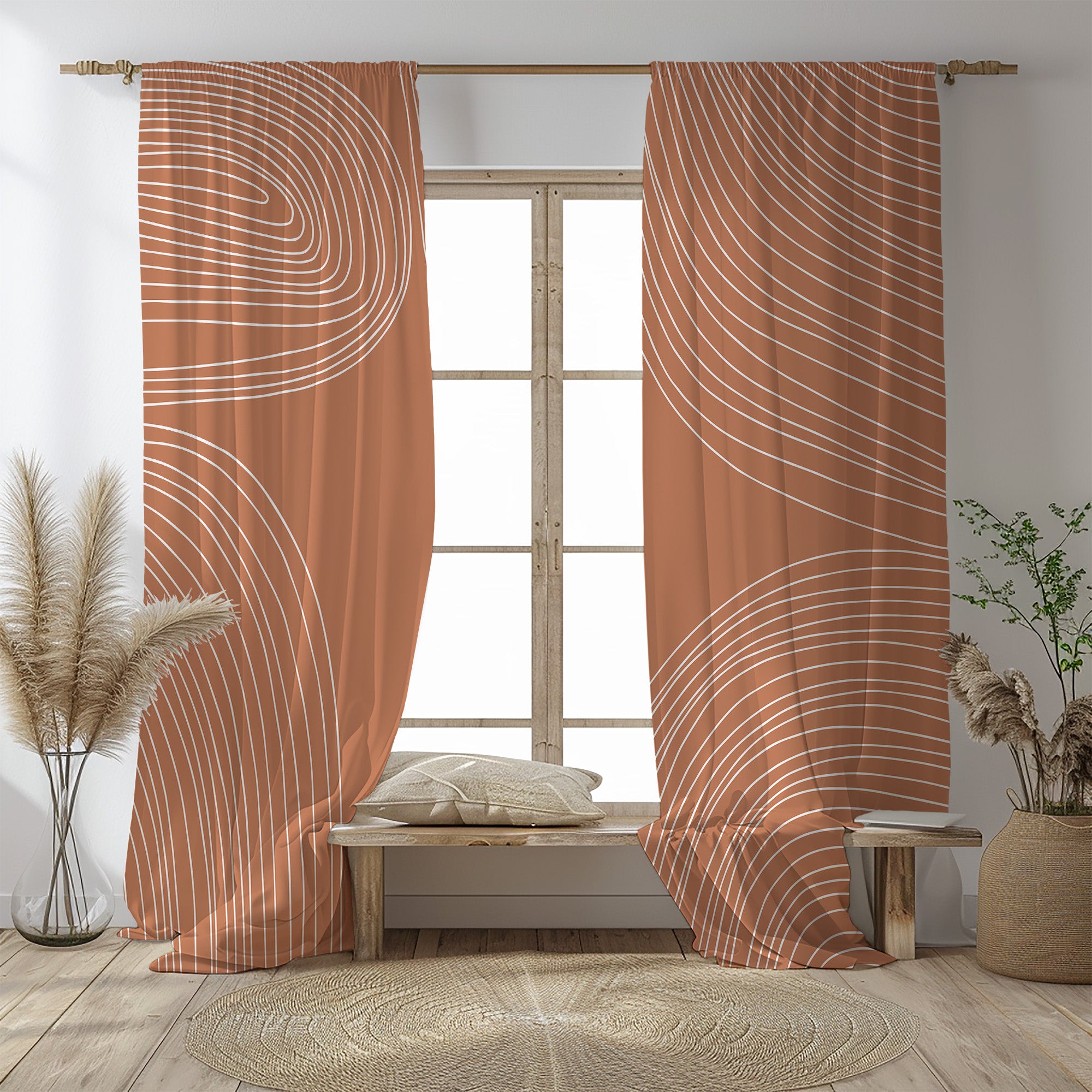 Rainbow Mid Century Modern Earthy Terracotta Boho Blackout Window Curtains MAYE - 2 Panels