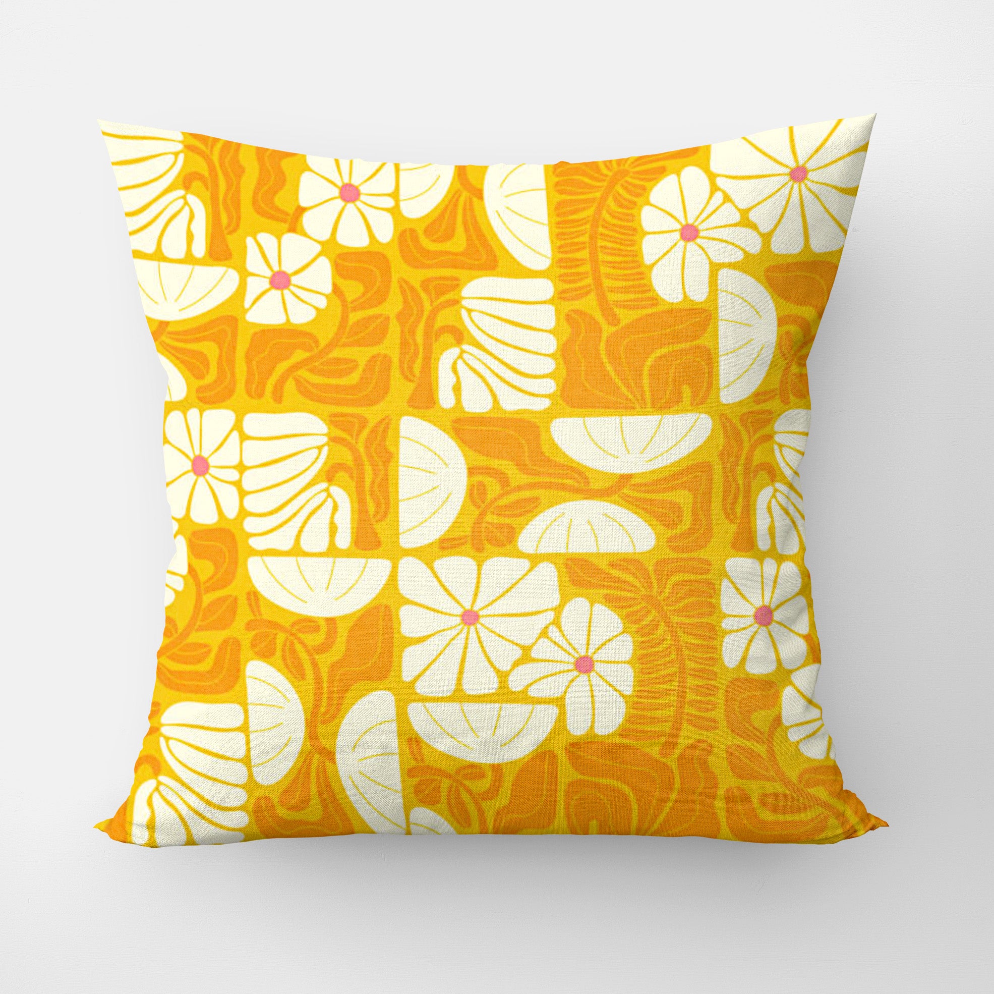 Retro Abstract Yellow Floral Throw Pillow Cover DAISY
