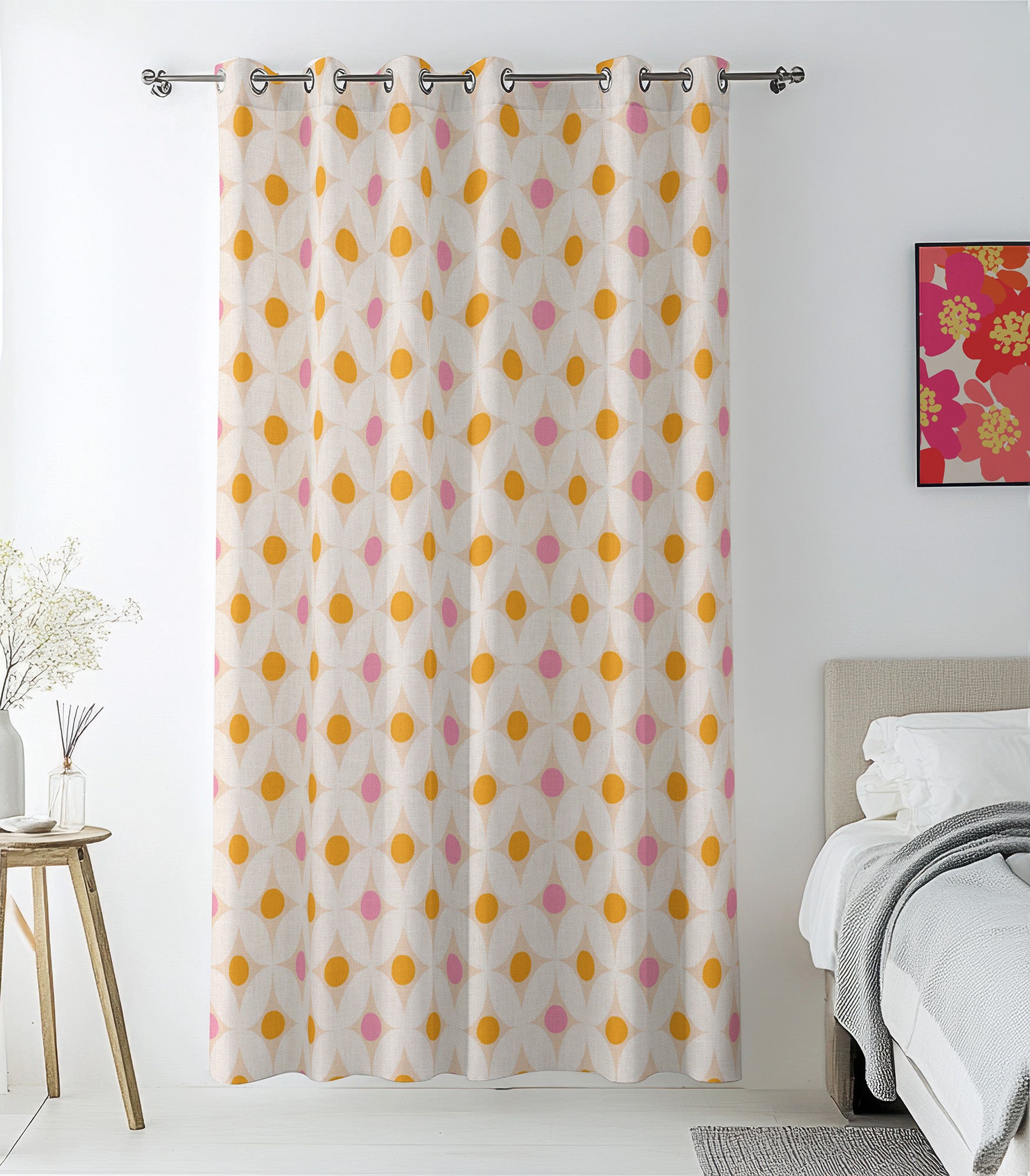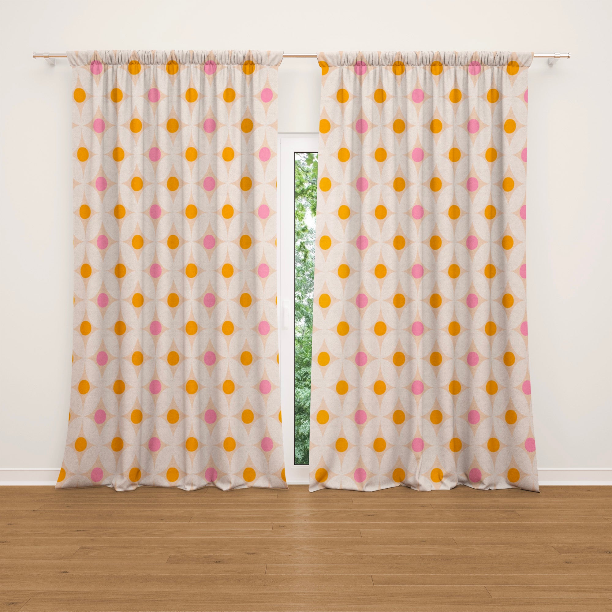 Retro Geometric Orange Pink Beige Maximalist Aesthetic Blackout Window Curtains VIBRAZE