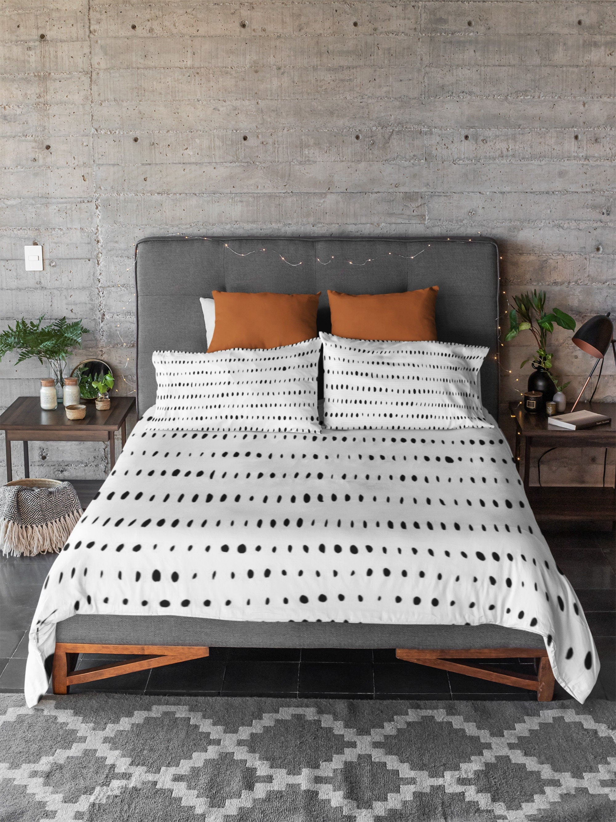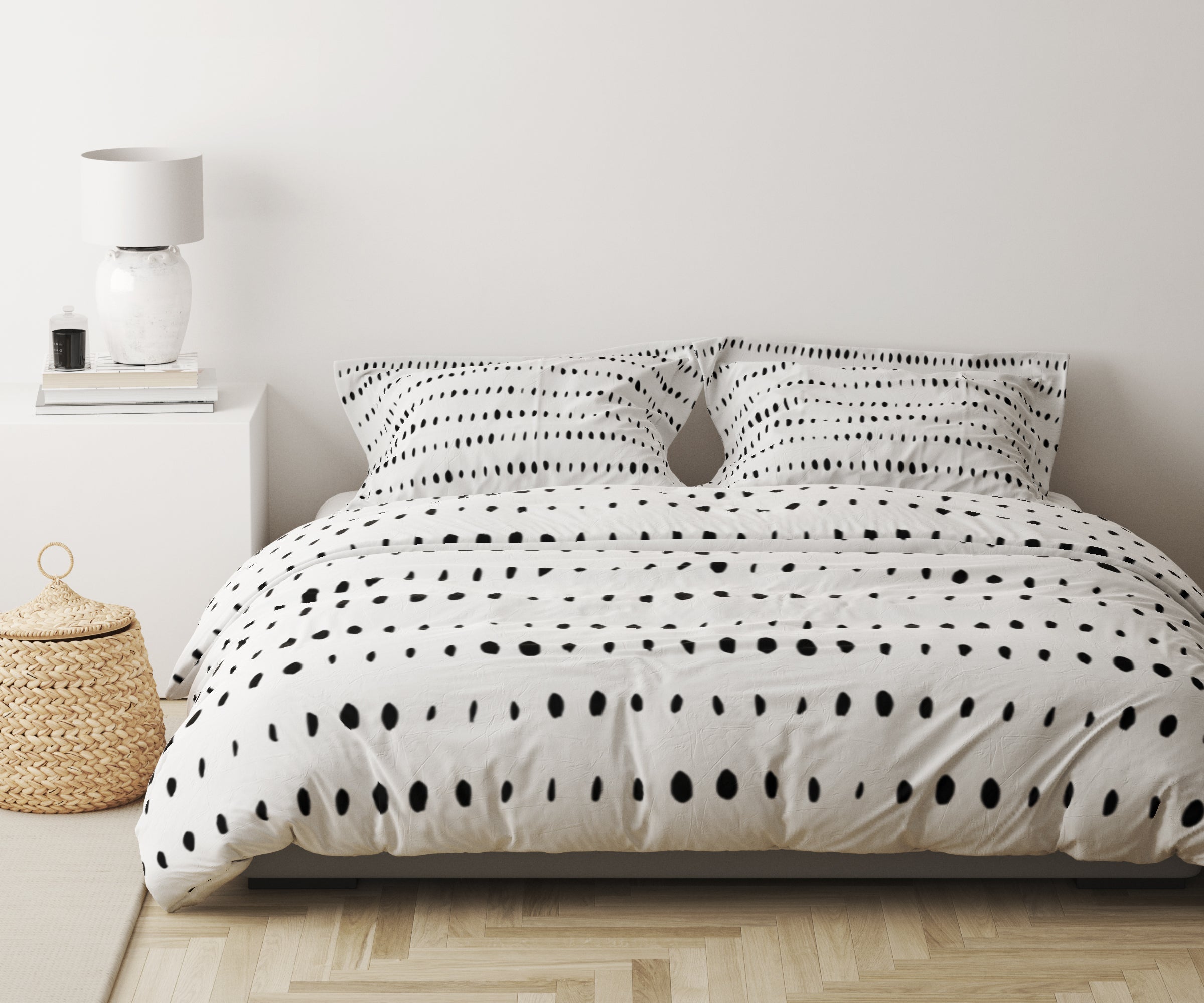Scandinavian Black White Minimalist Dots Cotton Duvet Cover Set AAREN