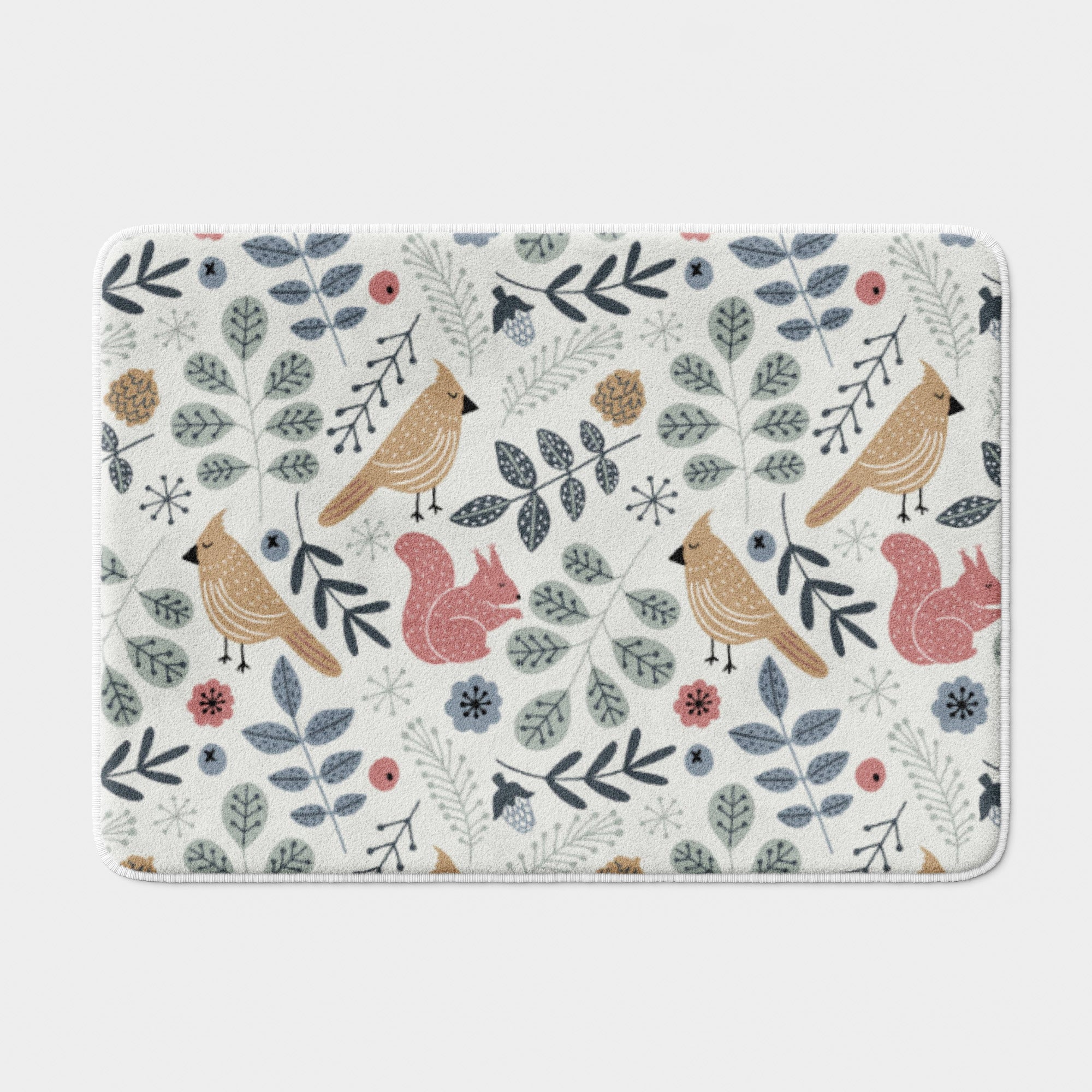 Scandinavian Folk Art Woodland Botanical Farmhouse Bath Mat SKOGEN