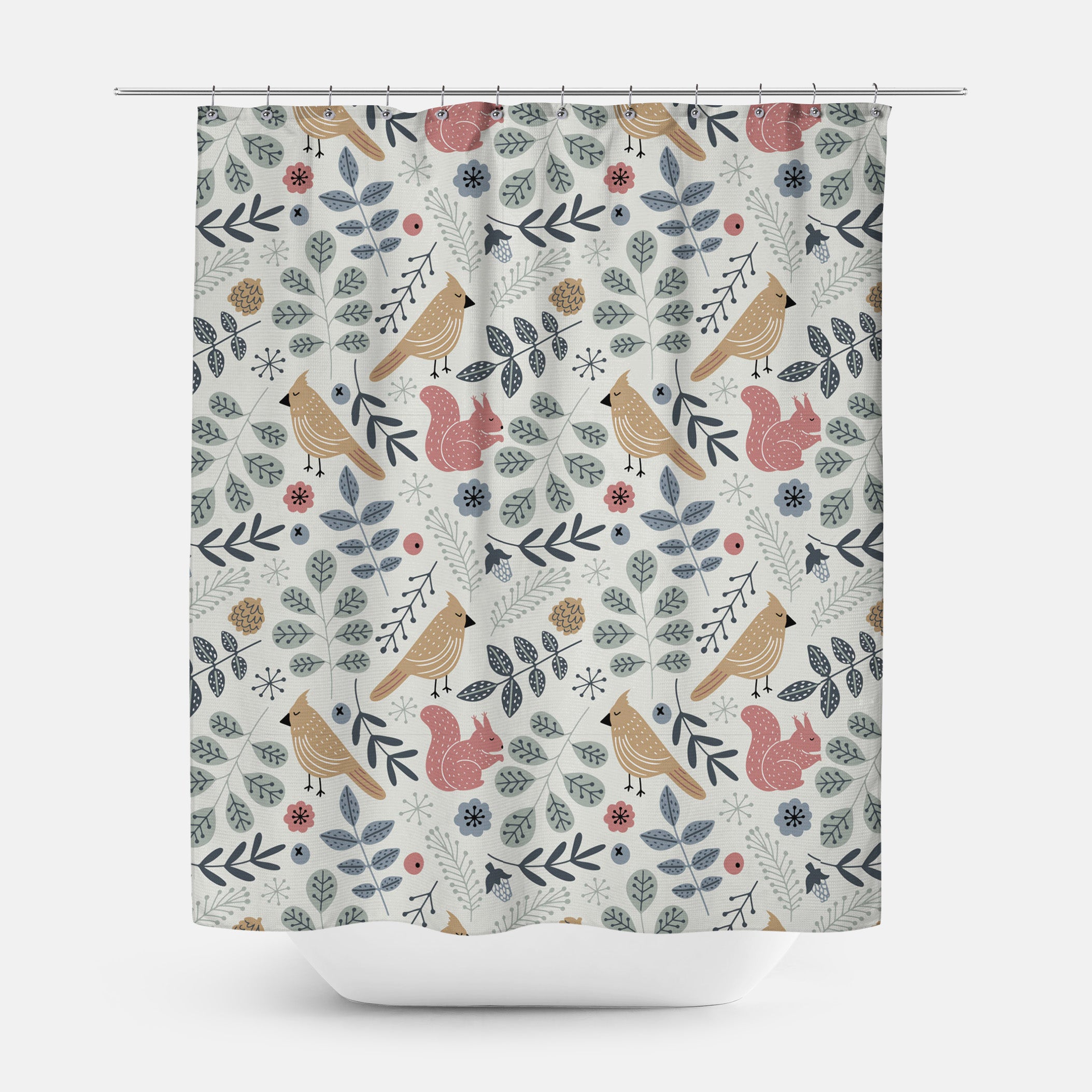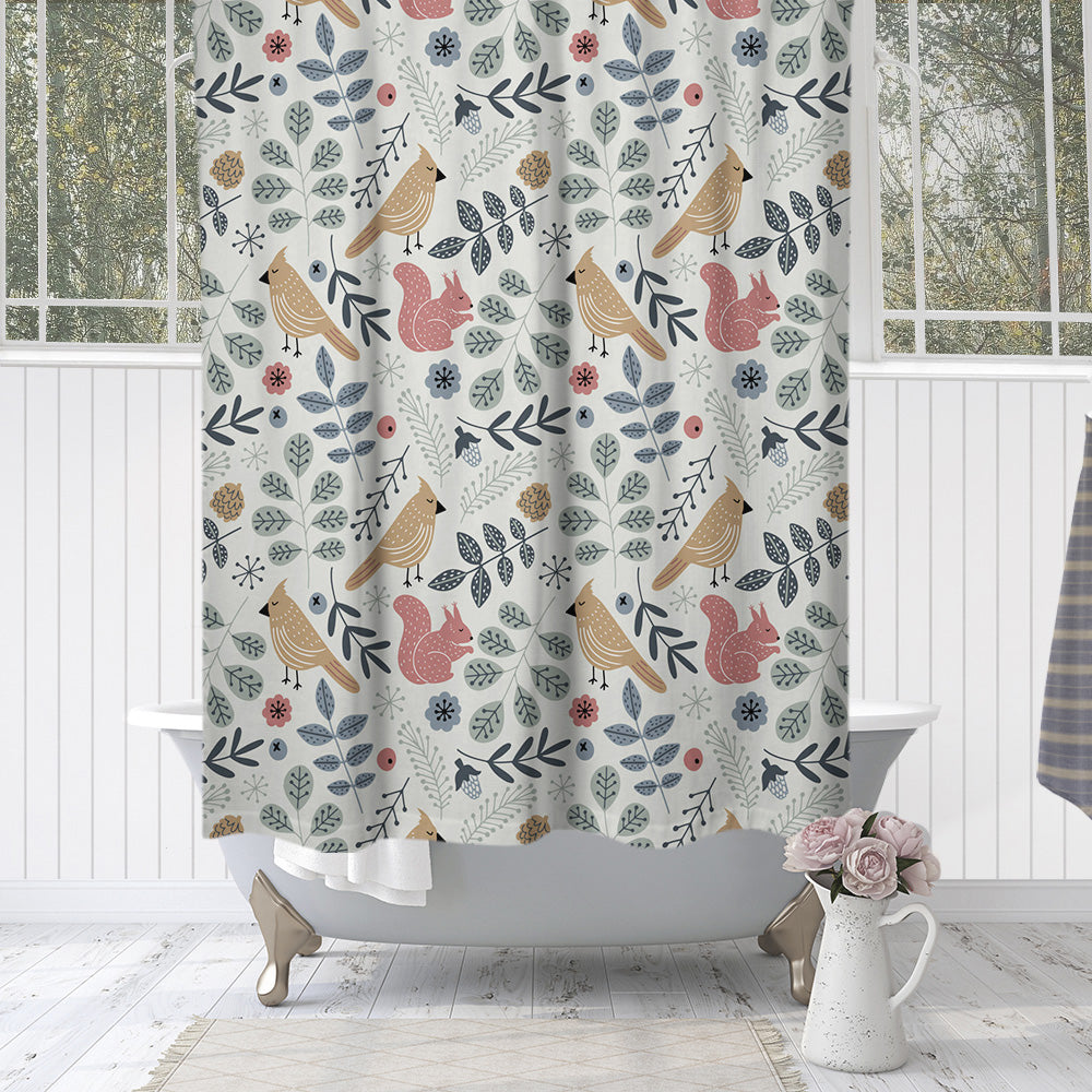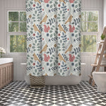 Scandinavian Folk Art Woodland Botanical Farmhouse Shower Curtain SKOGEN