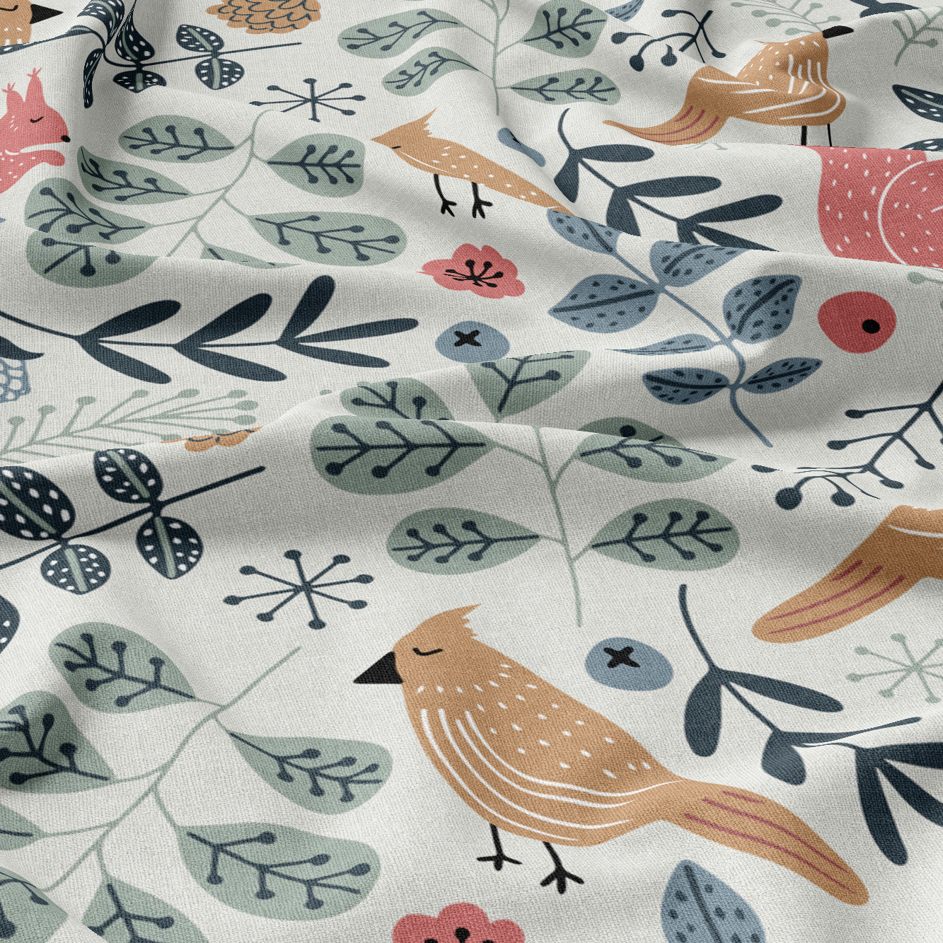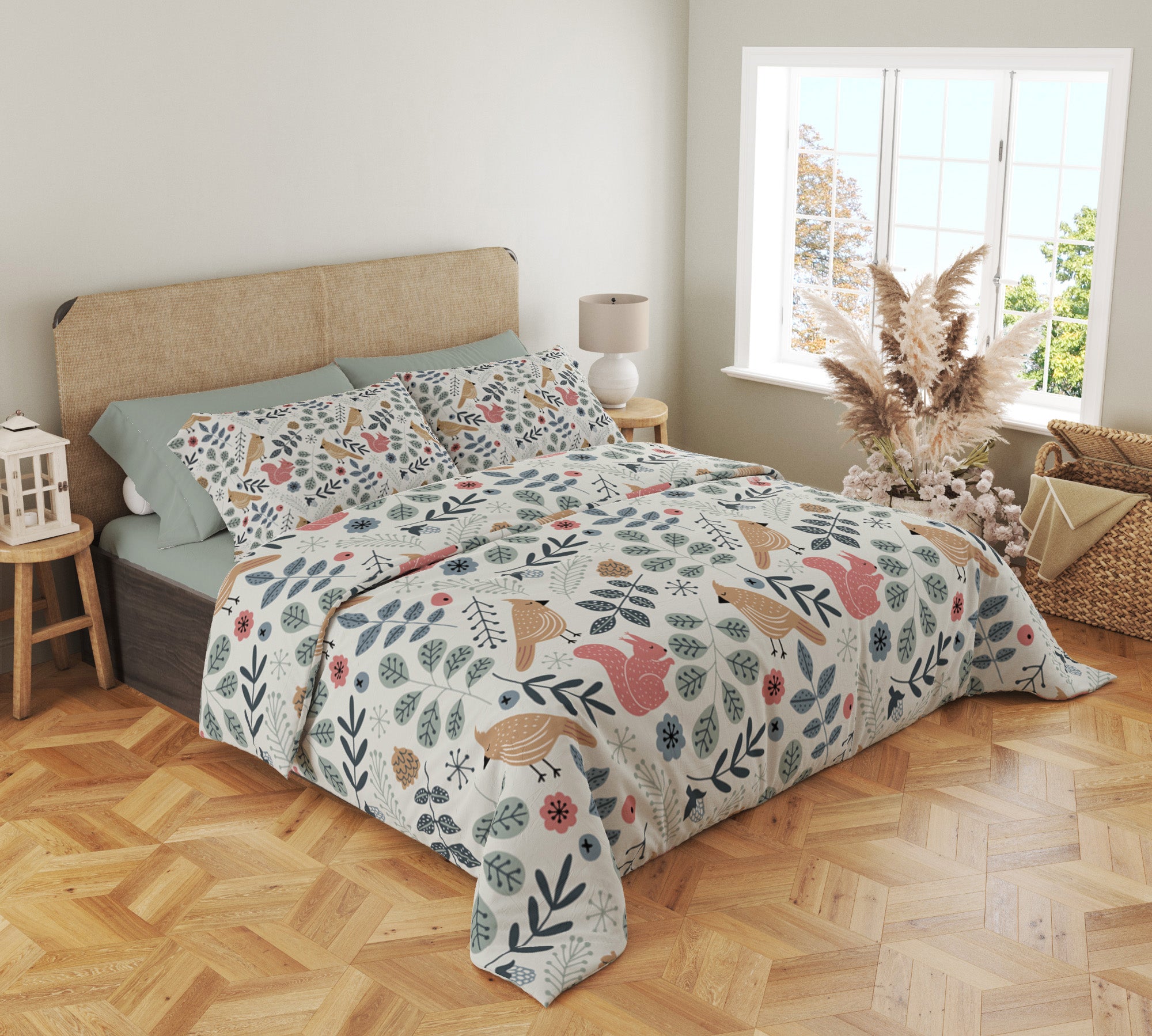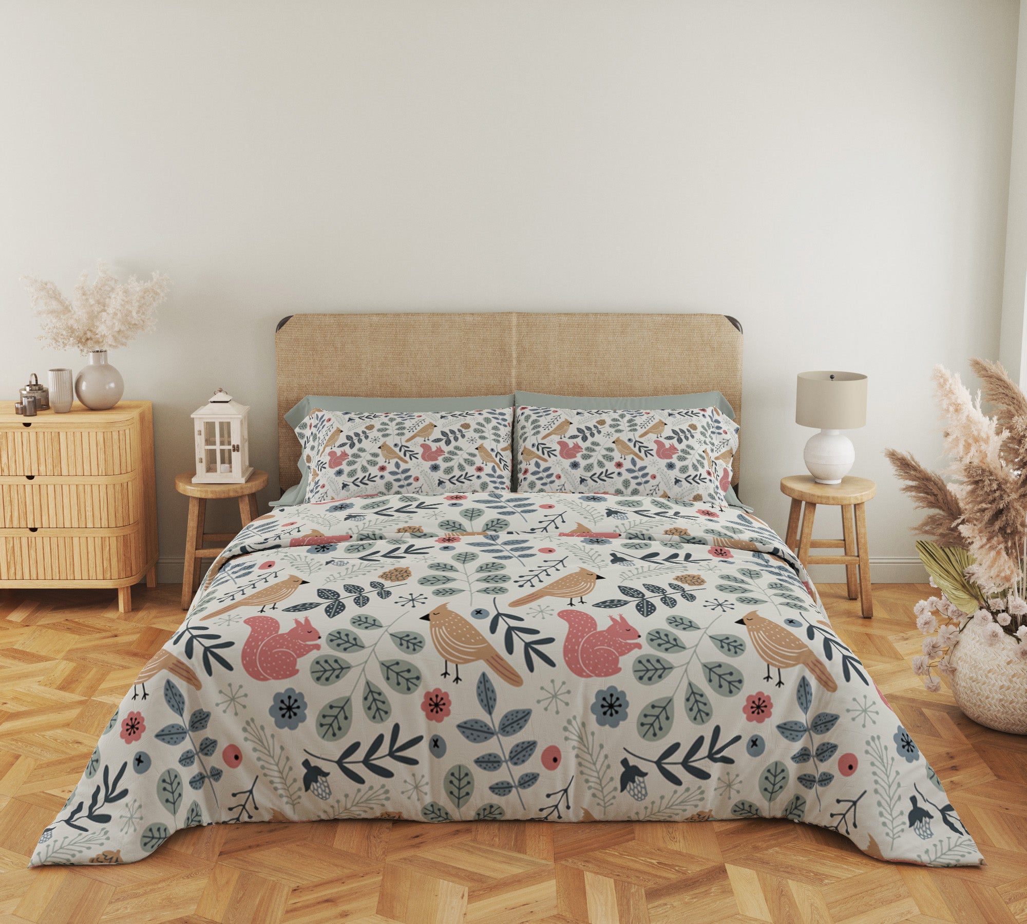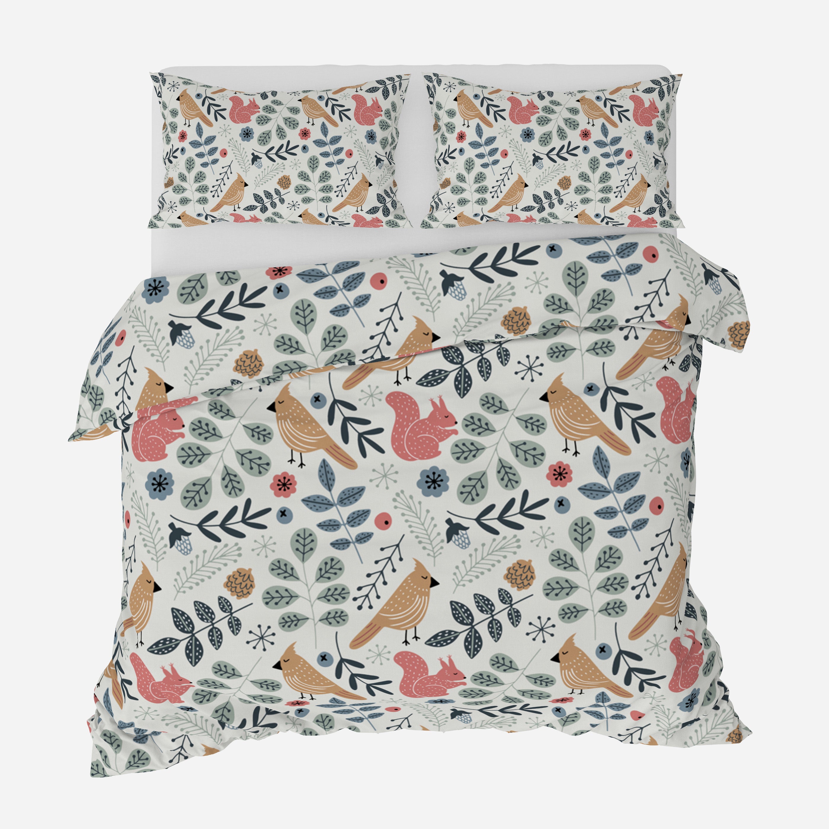 Scandinavian Folk Art Squirrel Woodland Farmhouse Cotton Duvet Cover Set SKOGEN