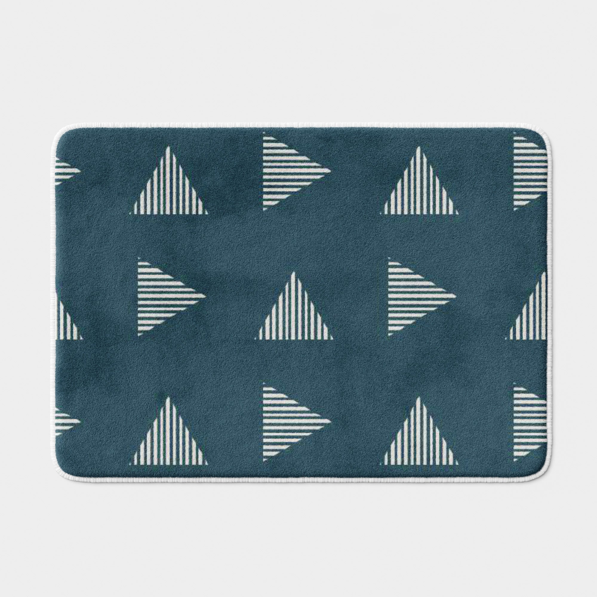 Mid Century Modern Minimalist Geometric Navy Blue Bath Mat BJORN