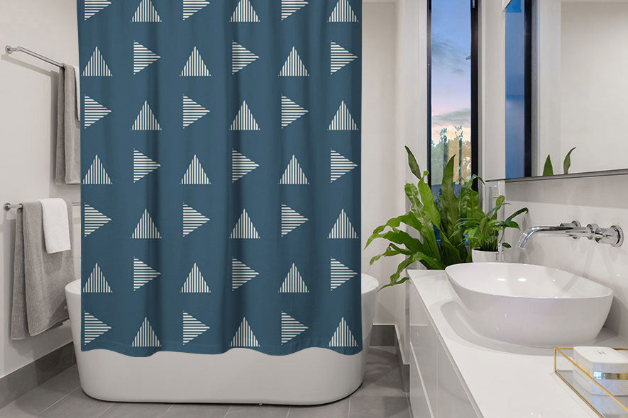Mid Century Modern Minimalist Geometric Navy Blue Shower Curtain BJORN