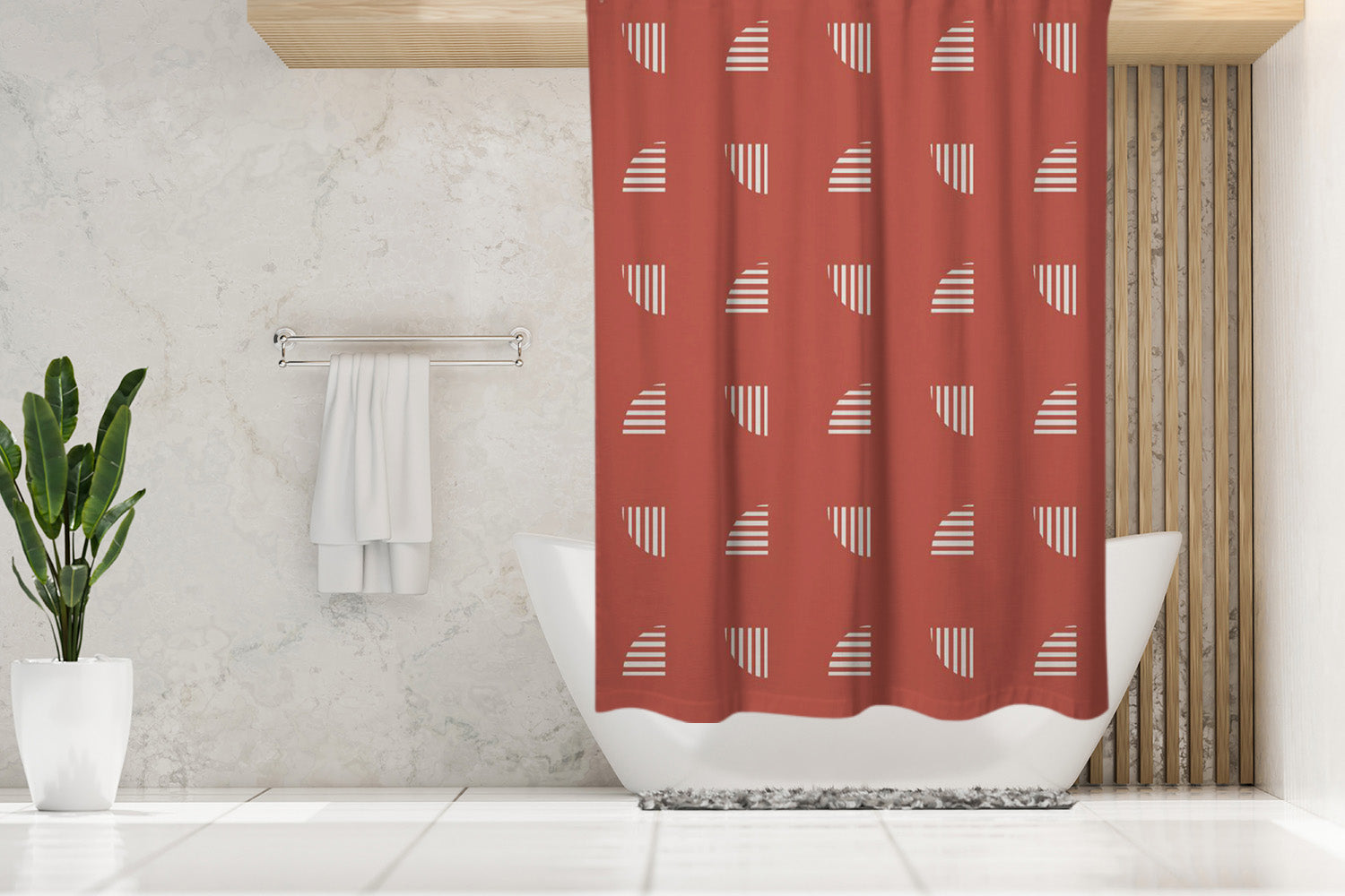 Mid Century Modern Minimalist Geometric Rust Shower Curtain ANNAR