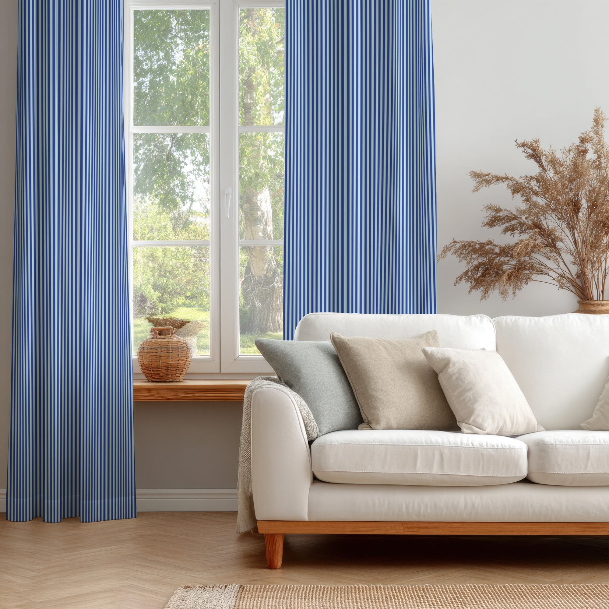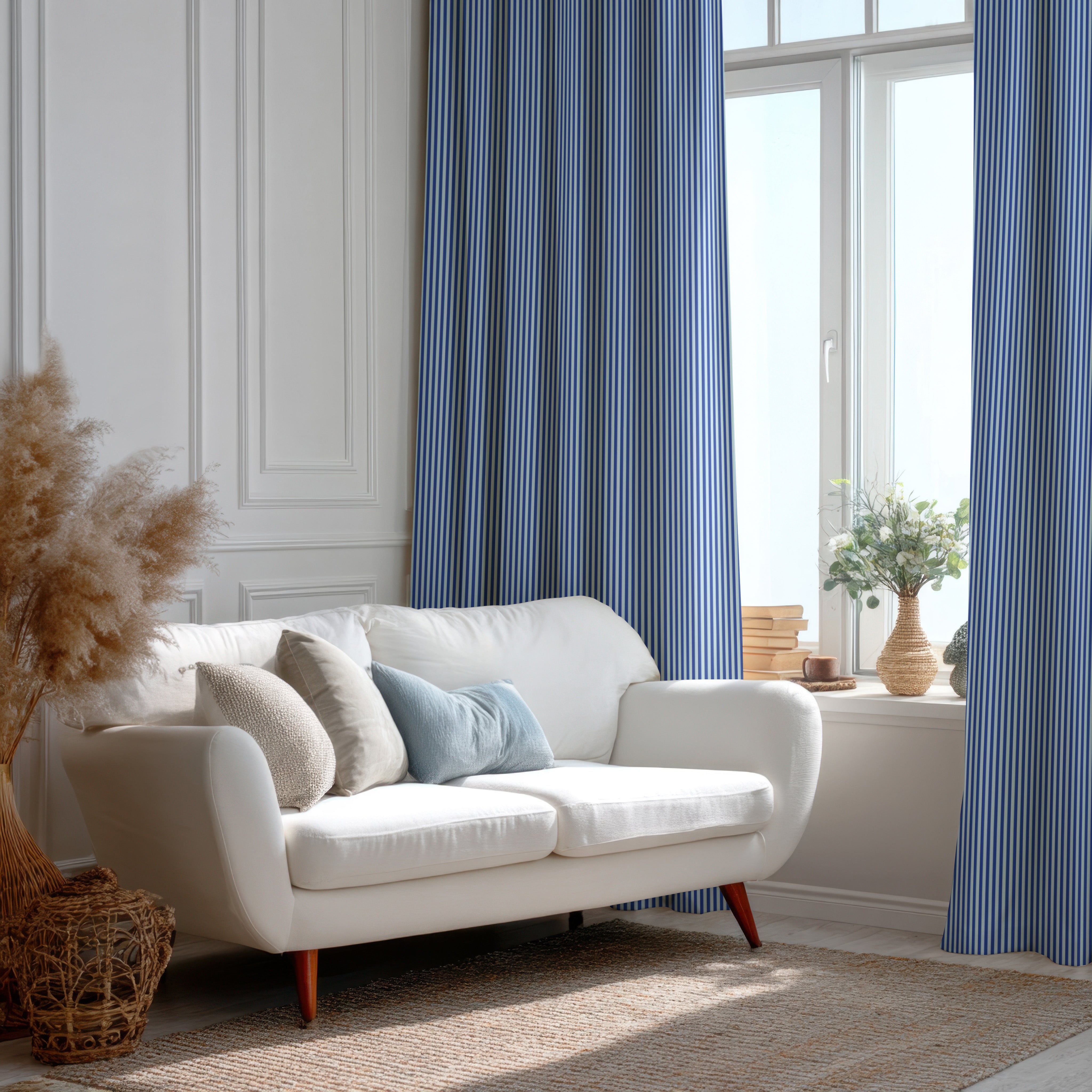 The HAVN curtain features a refined pattern of thin sky-blue stripes, evoking the lightness of seaside horizons and the clean elegance of Scandinavian aesthetics. Its minimal lines bring balance and a fresh, timeless character to any interior.