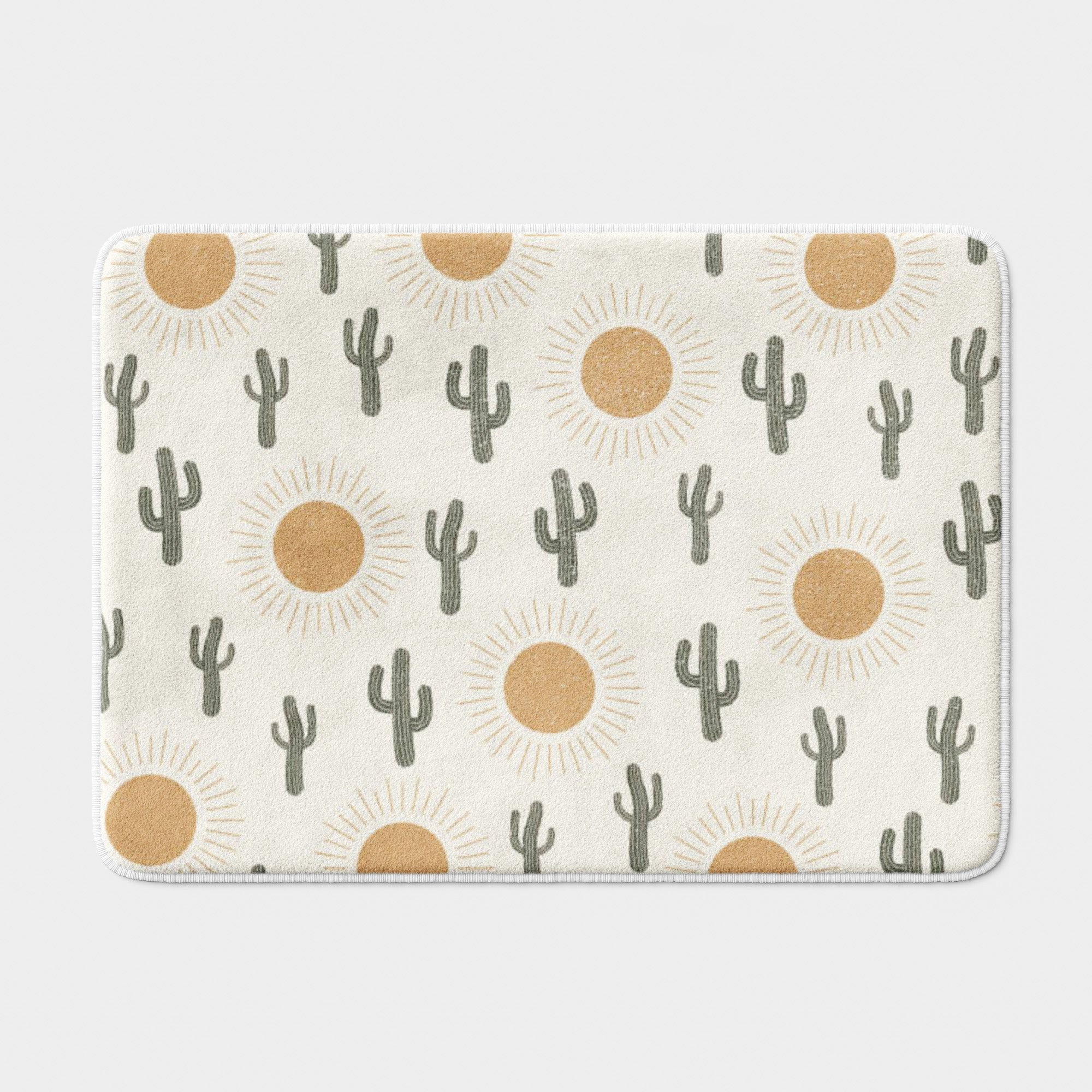 Summer Cactus Desert Sun Boho Southwestern Bath Mat CACTUS