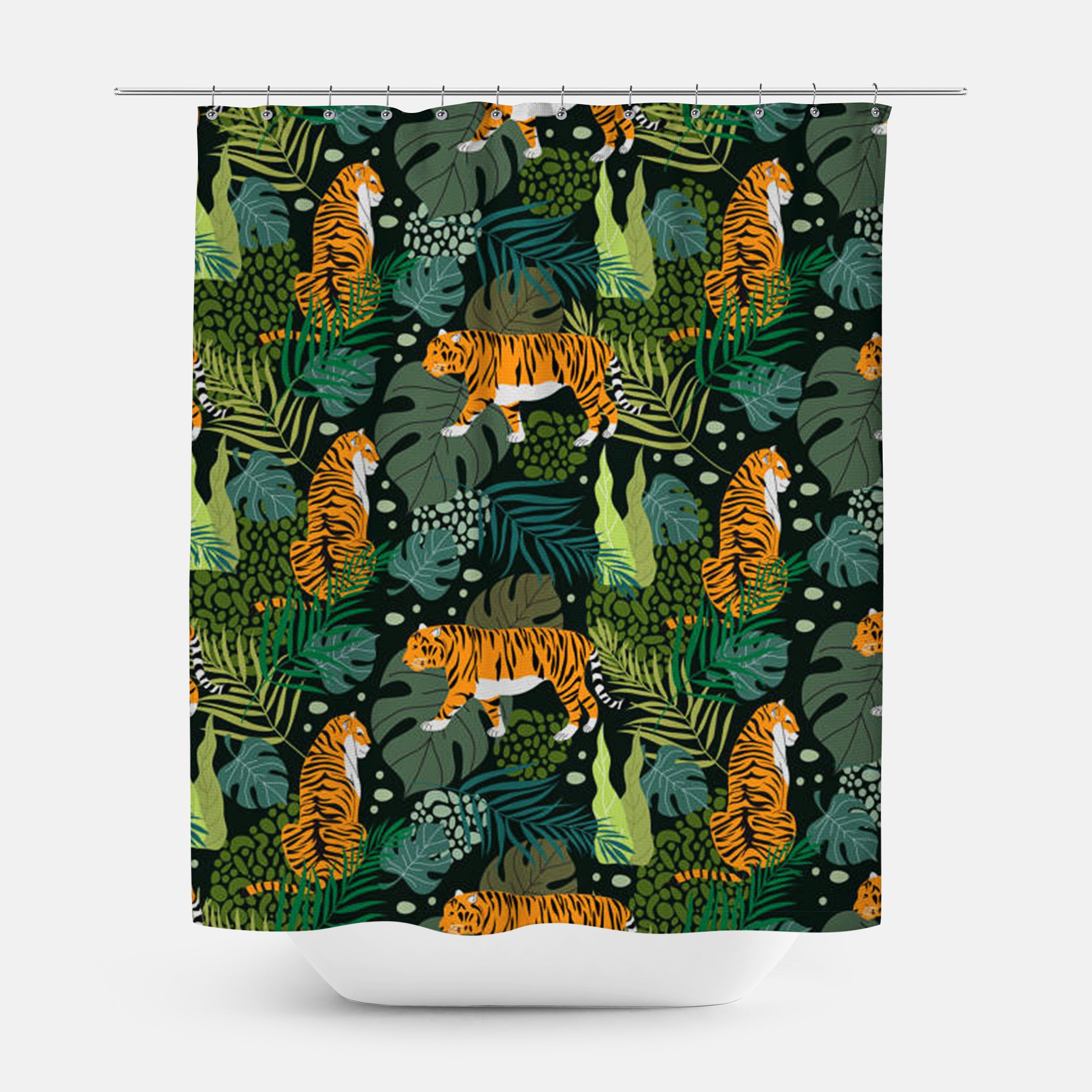 Tigers And Leaves Boho Jungle Tropical Shower Curtain KENDARI