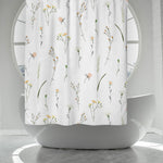 Tiny Wild Flowers White Botanical Floral Shower Curtain DELIA