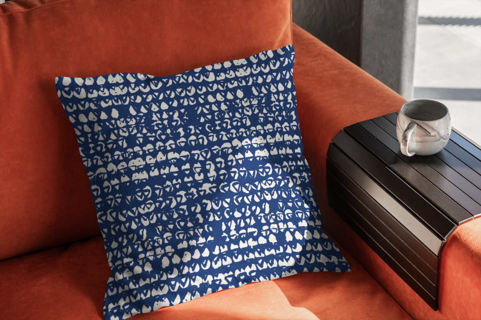 Triangle Shibori Blue Indigo White Throw Pillow Cover HENDRA