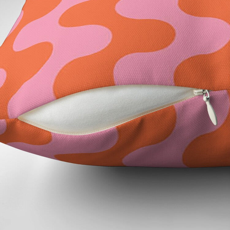 Wavy Stripes Retro Red Pink Maximalist Aesthetic Throw Pillow Cover