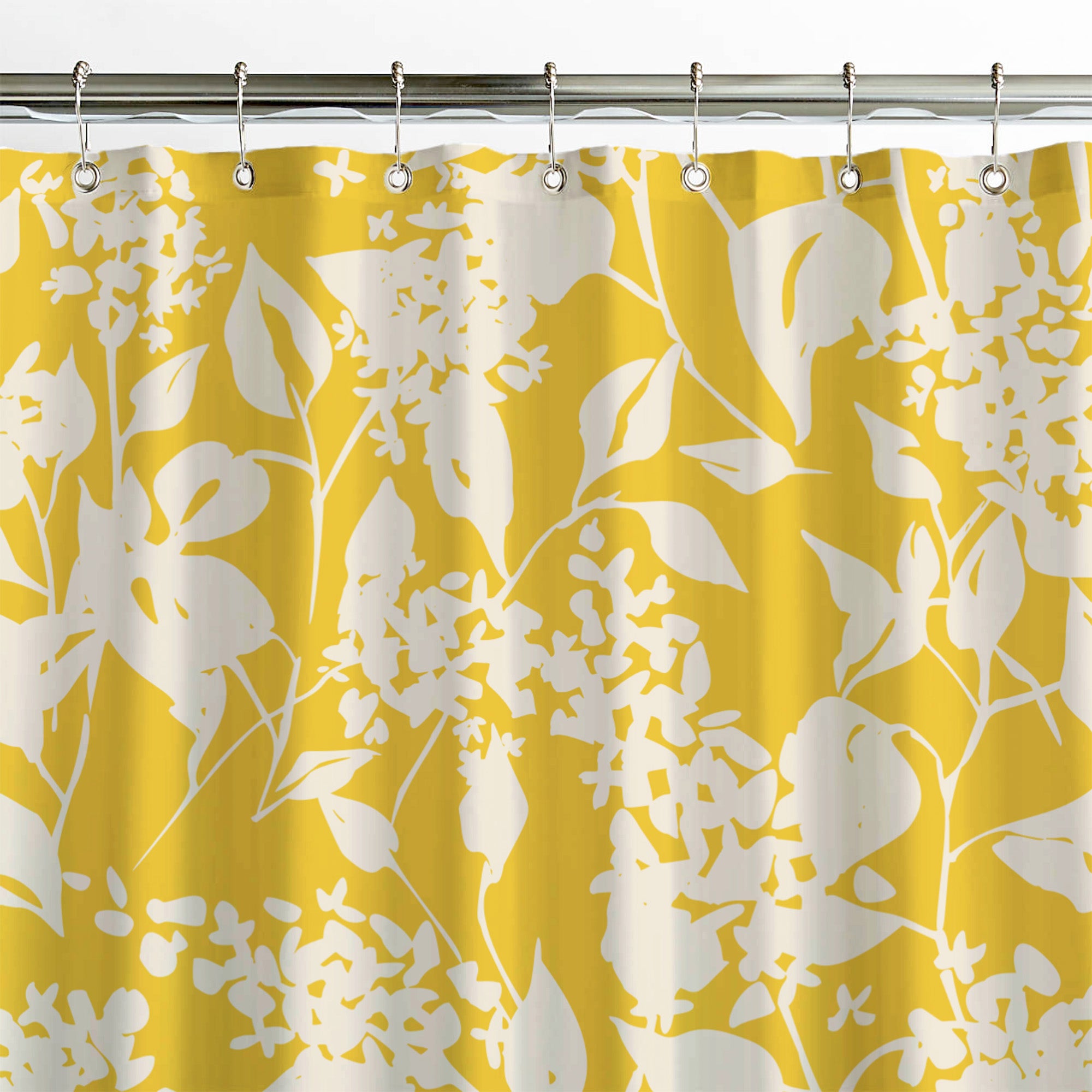 White Liliac Flowers Botanical Yellow Farmhouse Floral Shower Curtain LILIAC
