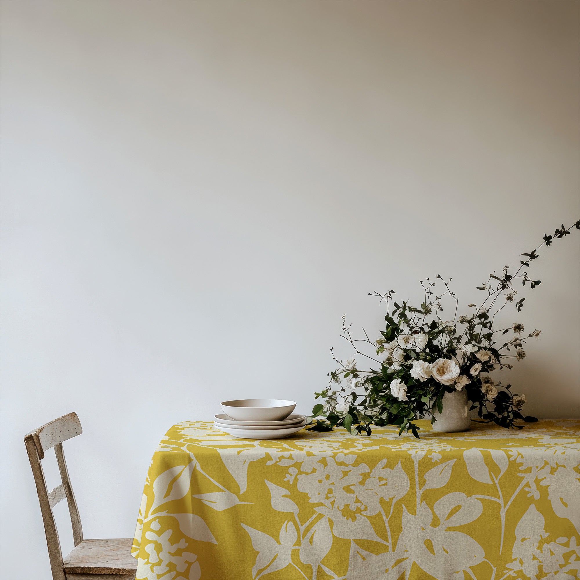 White Lilac Flowers Botanical Yellow Farmhouse Floral Tablecloth LILIAC