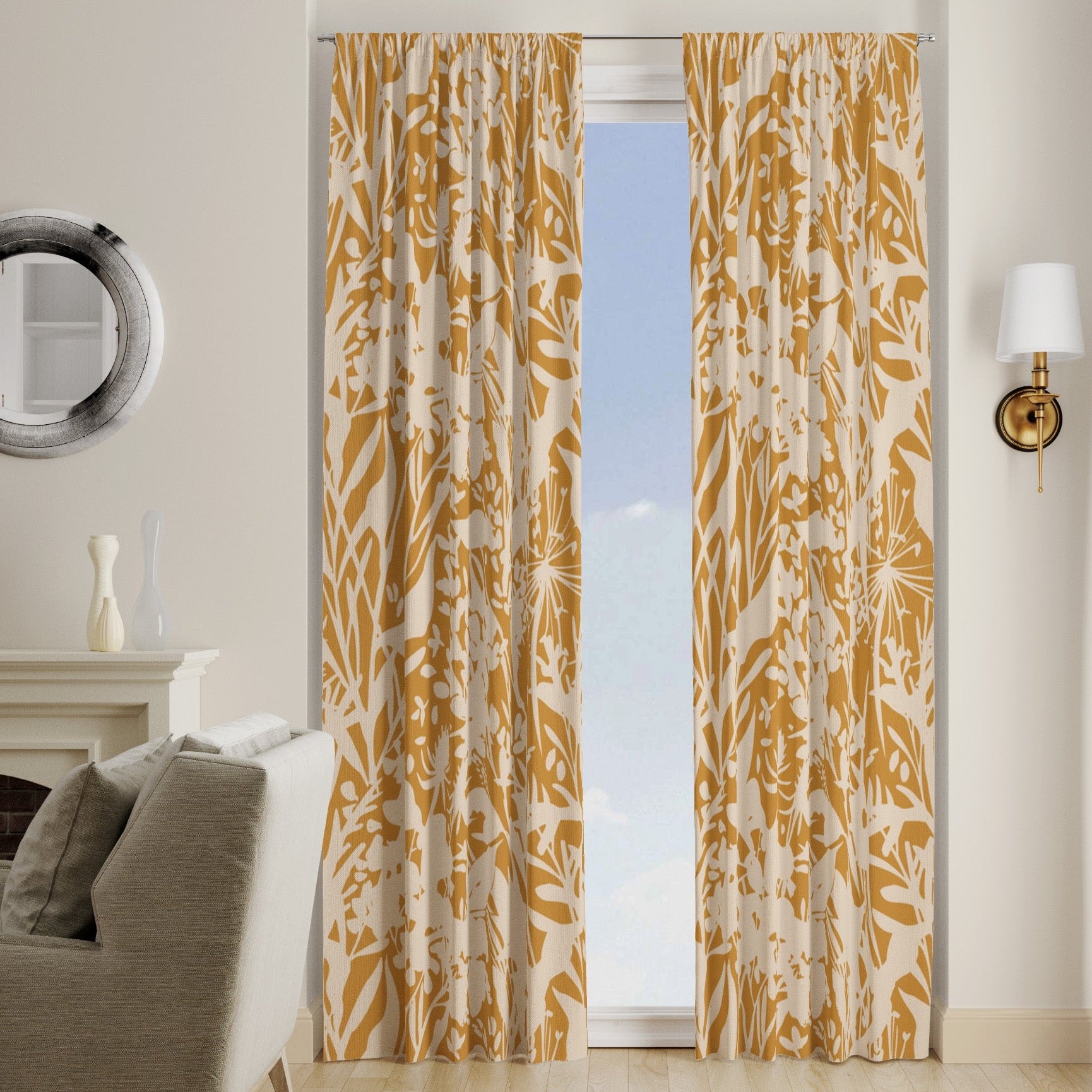 Wild Flowers Field Botanical Mustard Yellow Blackout Window Curtain CALLA
