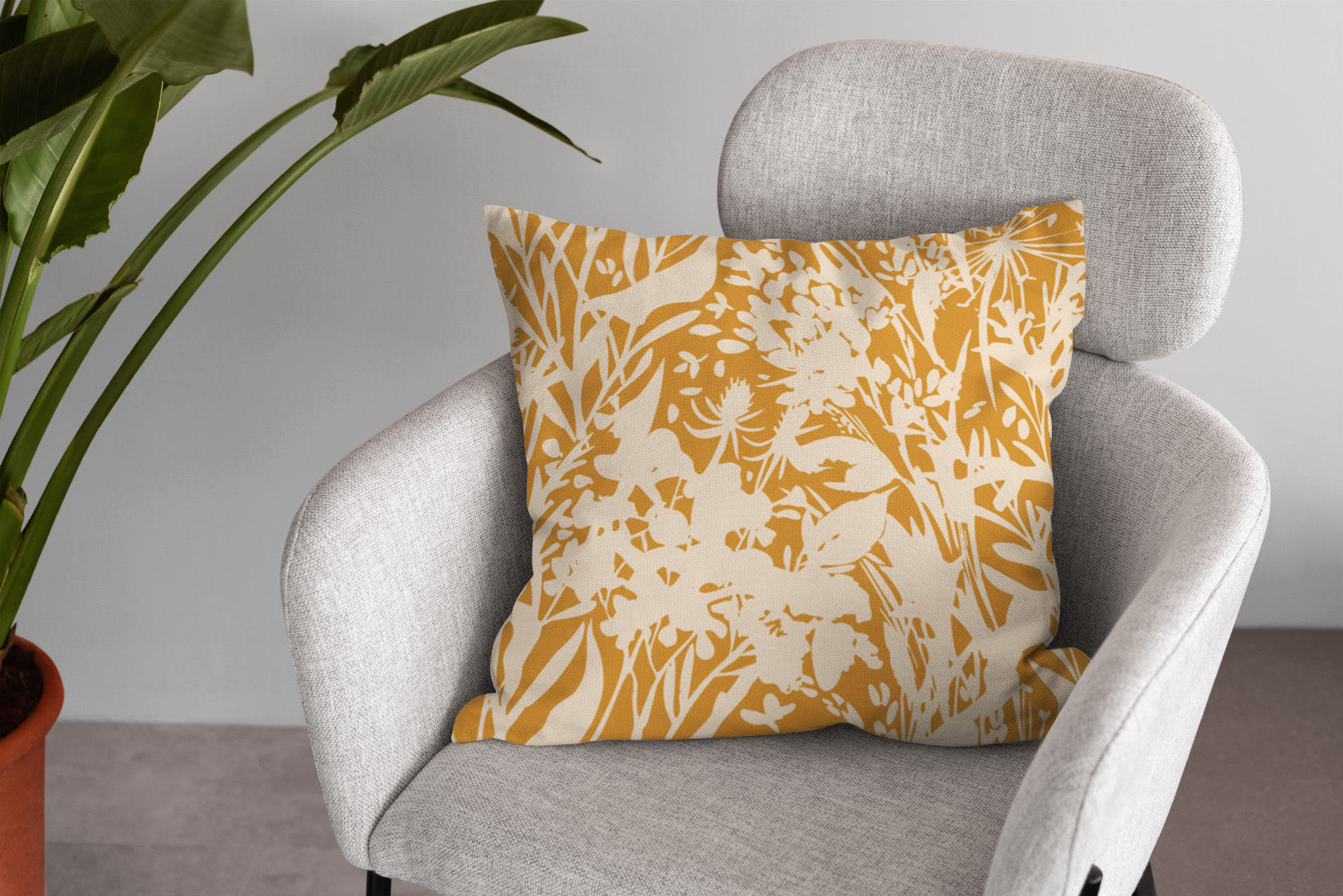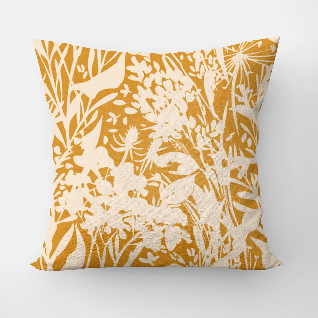 Wild Flowers Field Botanical Mustard Yellow Throw Pillow Cover CALLA