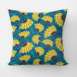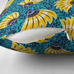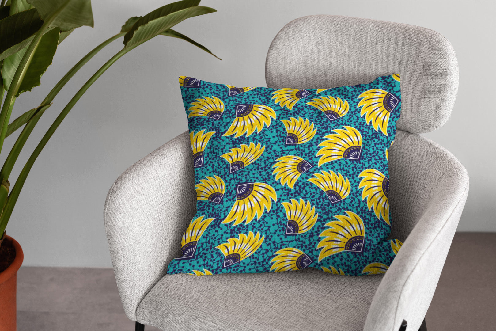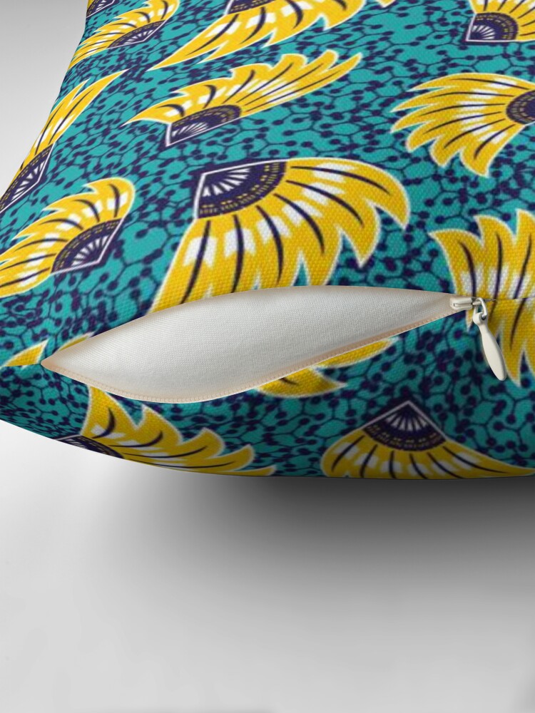 Yellow Teal Blue Floral Ankara African Kitenge Ethnic Throw Pillow Cover ANKARA