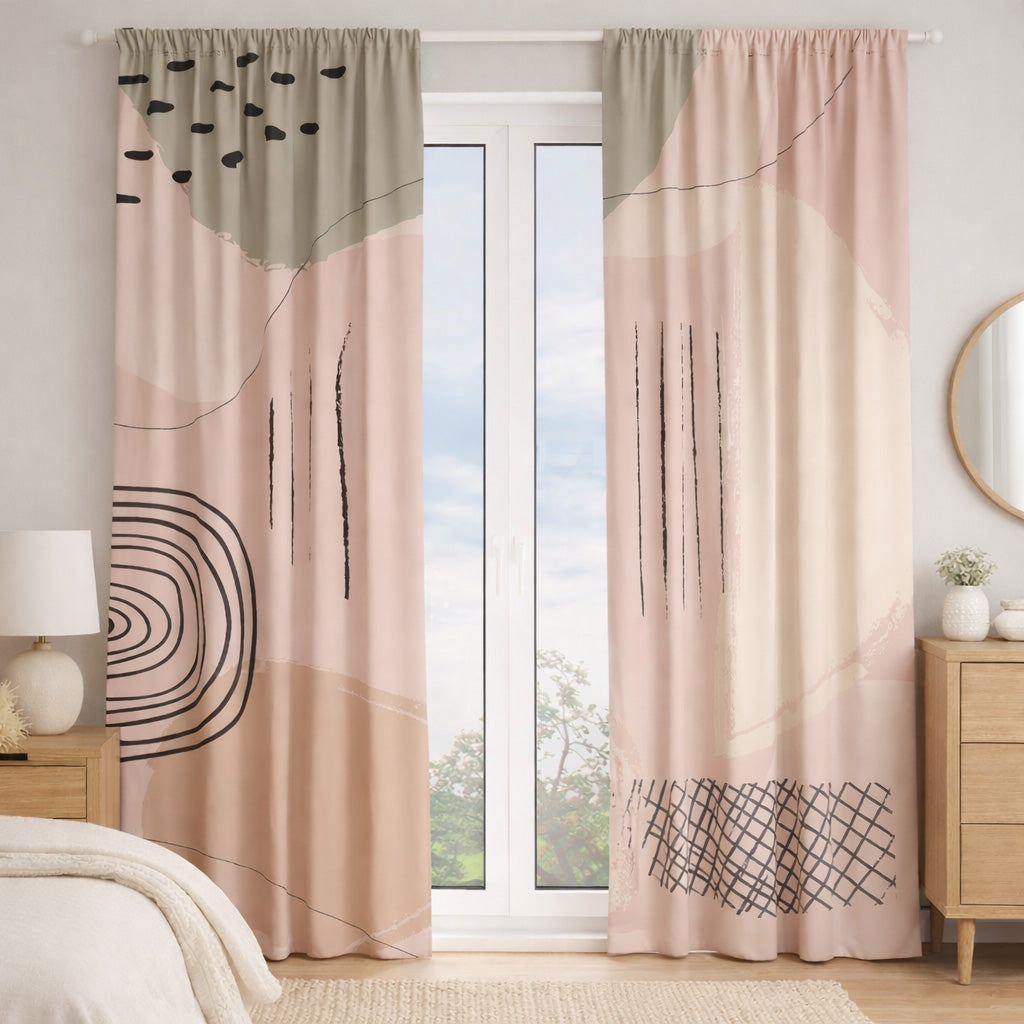 Inspired by contemporary abstract art, these blush-toned curtains add warmth and artistic character to your space. Soft shapes and neutral hues create a balanced look that complements modern, minimalist, and Scandinavian interiors.