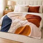 Abstract Art Terracotta Orange Blush Pink Blue Ivory Boho Fleece Throw Blanket ADELE