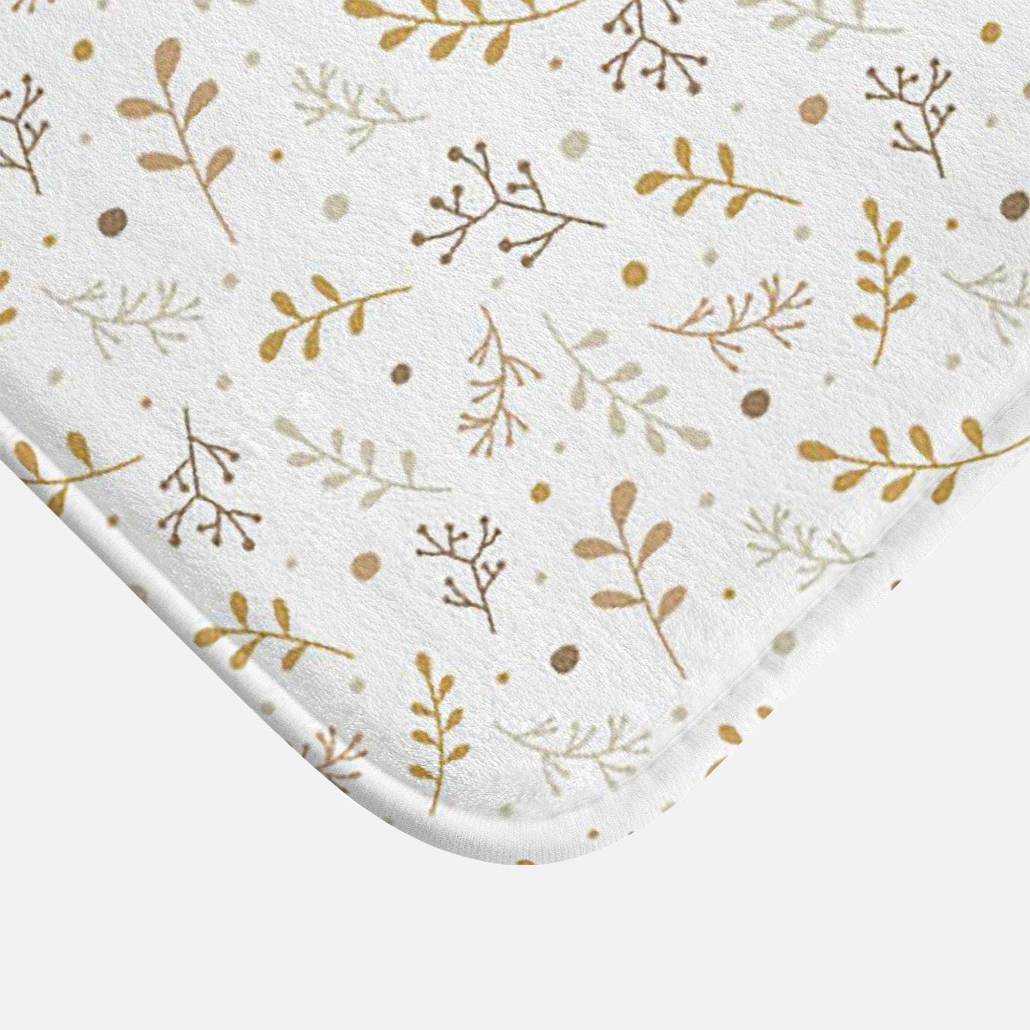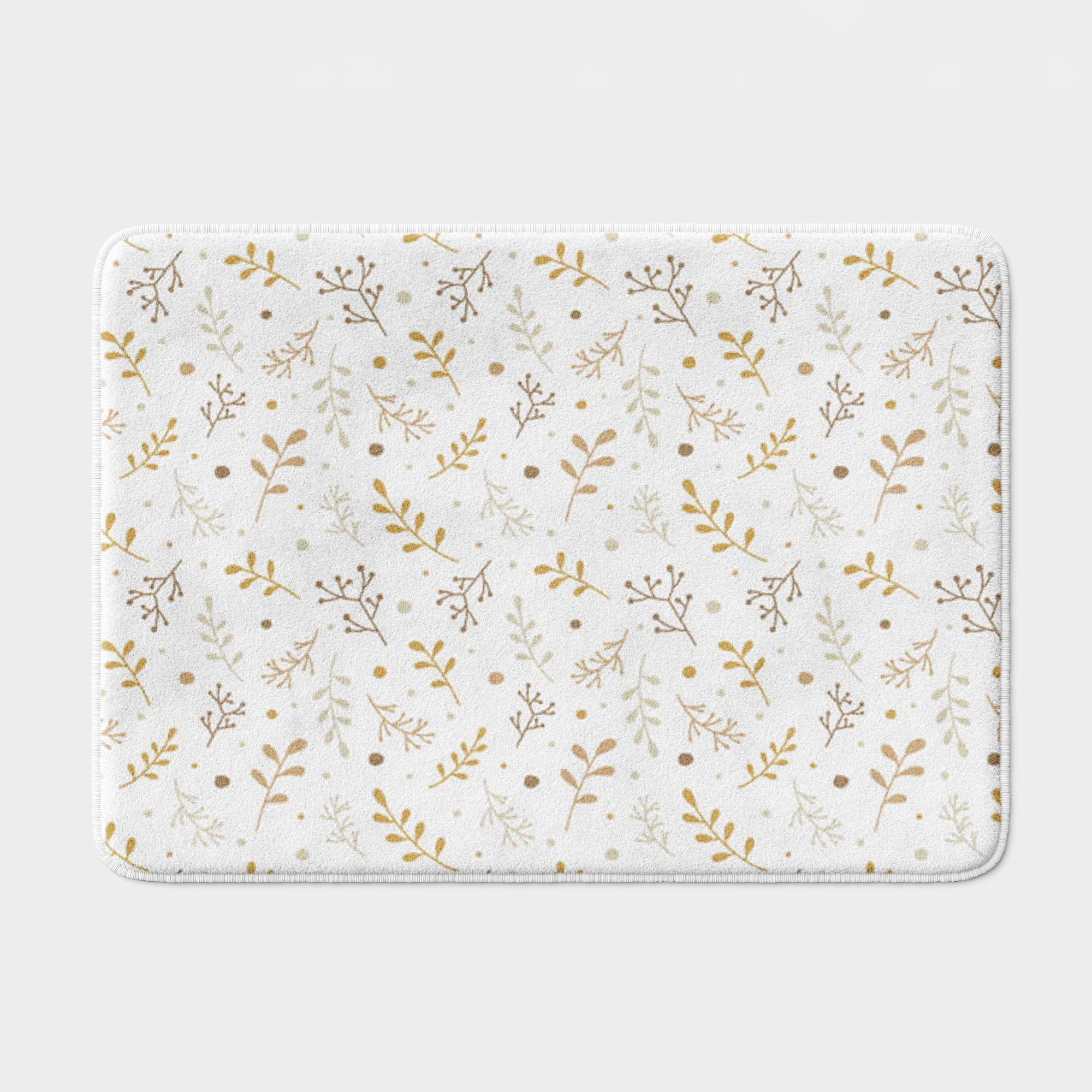 Christmas Gold Branches White Elegant Bath Mat CAROL