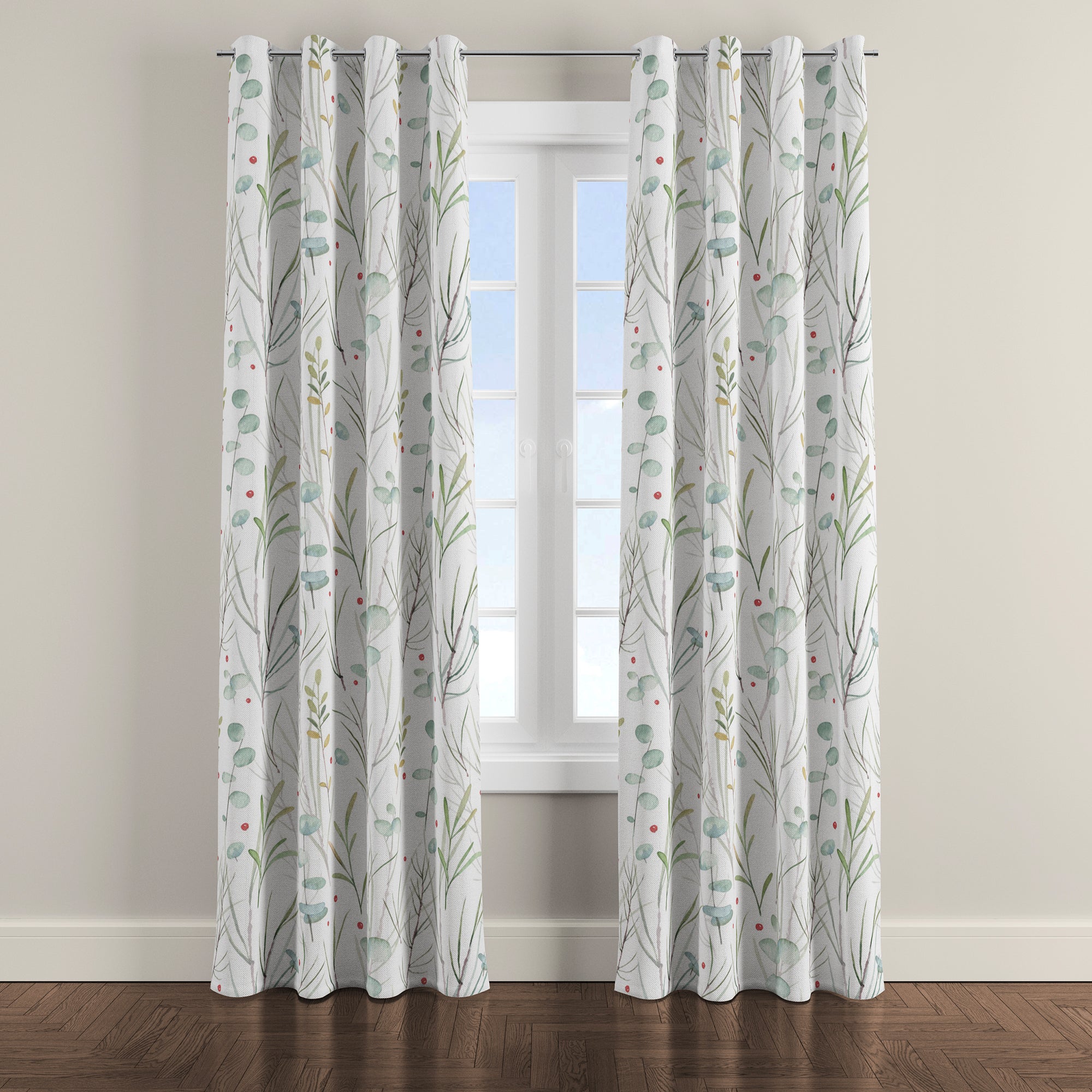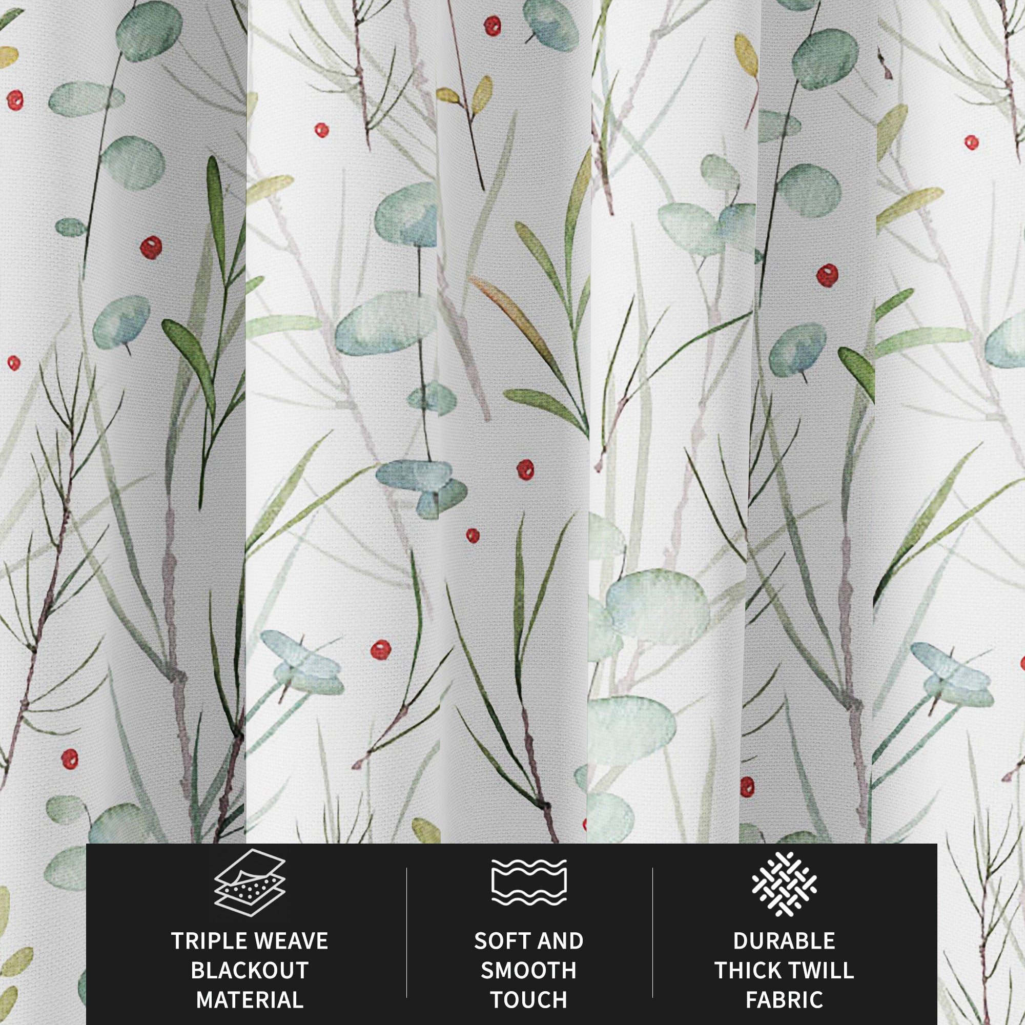 Eucaliptus, Fir Tree Branches And Mistletoe Christmas Floral Blackout Window Curtain KERENSA