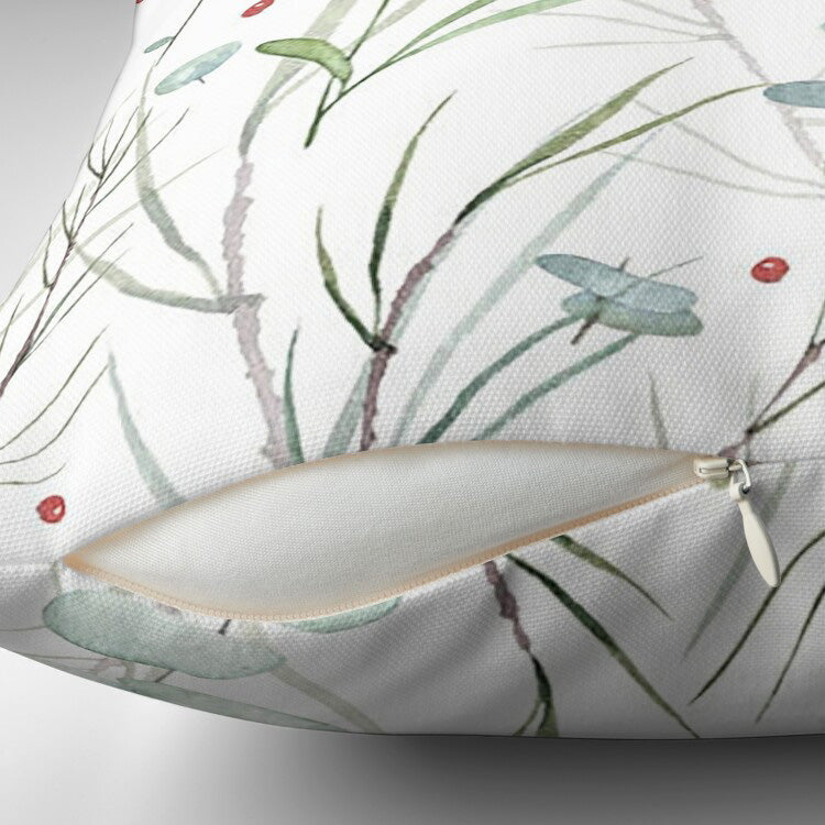 Eucaliptus, Fir Tree Branches And Mistletoe Christmas Floral Watercolor Throw Pillow Cover KERENSA